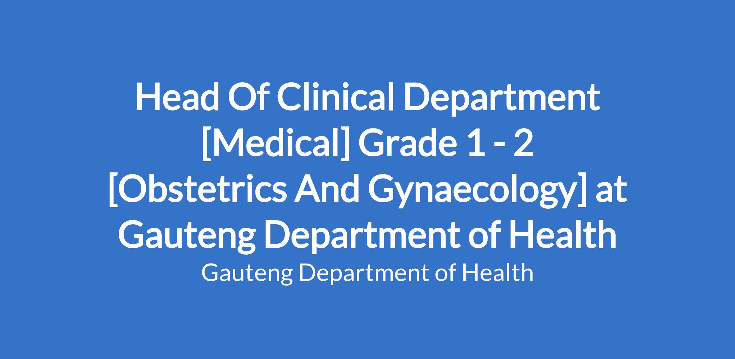 The Head of Department (HOD): Obstetrics and Gynaecology will provide strategic, clinical, academic, and administrative leadership to ensure delivery of high-quality, evidence-based obstetric and gynaecological services at the Steve Biko Academic Hospital cluster and University of Pretoria. The incumbent will oversee all clinical services within the Steve Biko Academic Hospital and cluster health establishments.