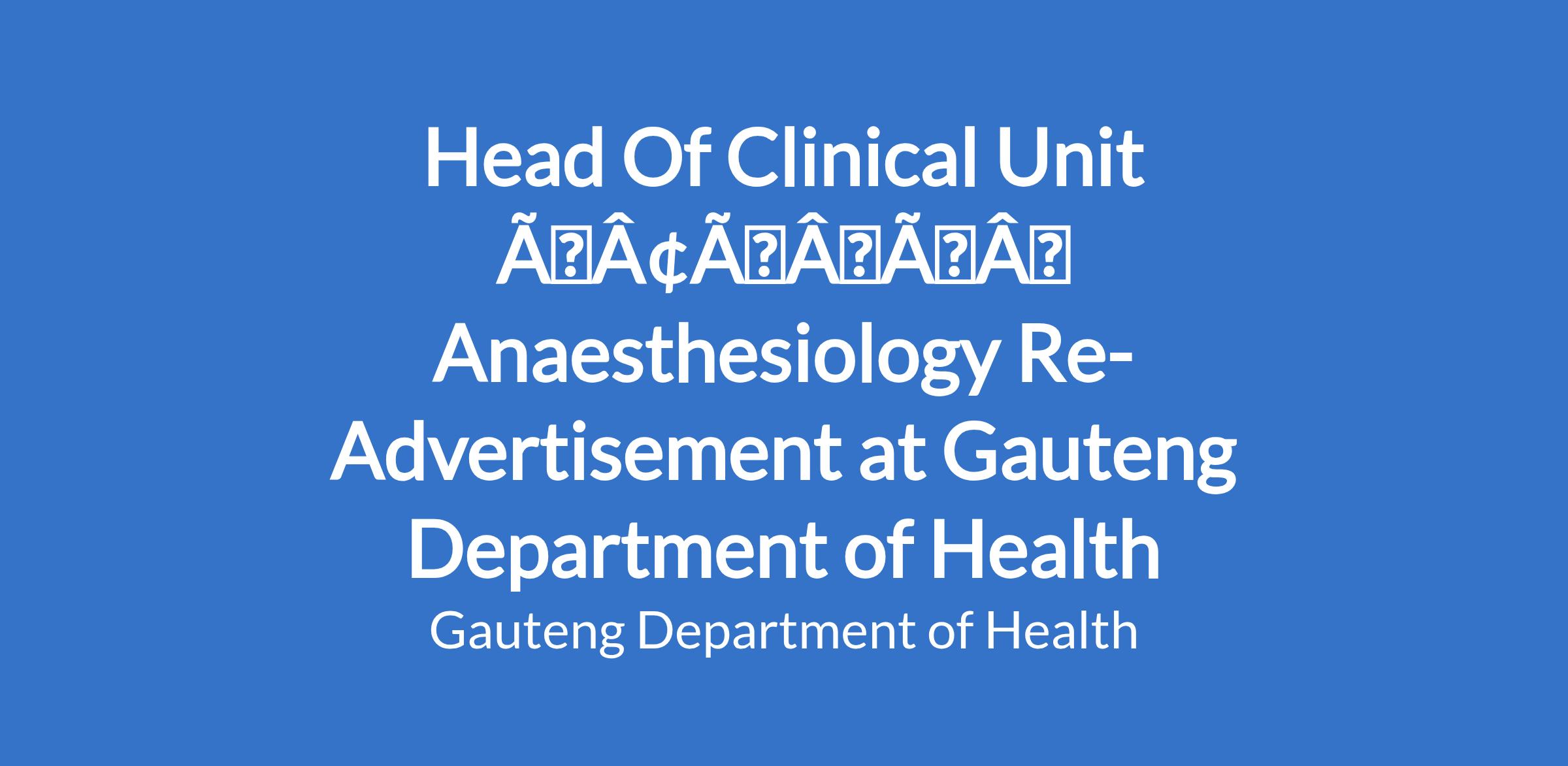 Effective overall management of critical care and anaesthetic services. Assess and ensure good quality clinical service delivery by development and implementation of guidelines, providing training and support to students, medical interns, community service doctors, nursing staff, medical officers and specialists in the unit. Management and control of equipment.