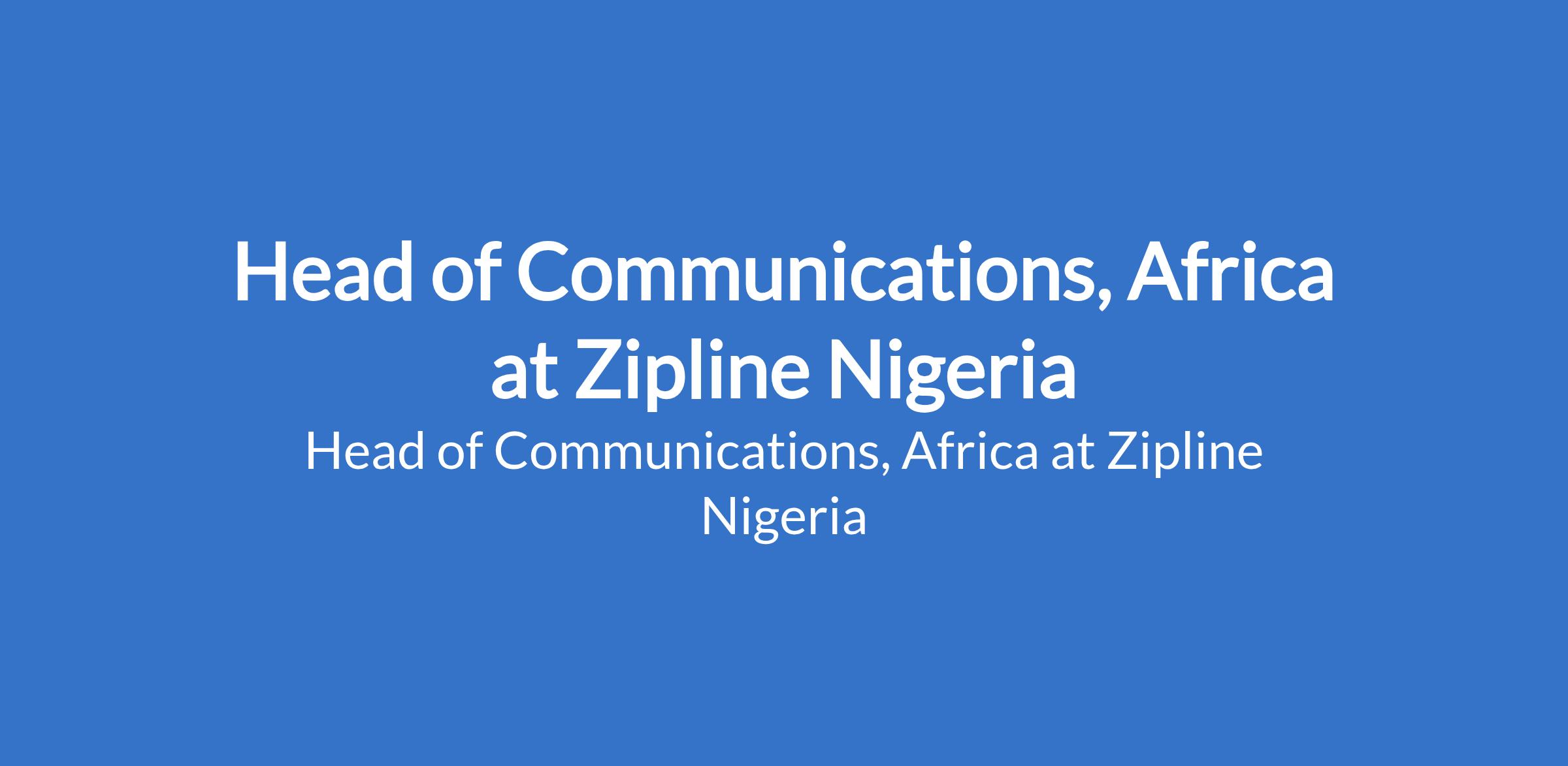 Zipline Nigeria is recruiting to fill the position of: Head of Communications, Africa. The position is located in Lagos State. Interested candidates should possess relevant qualifications with 8 years of relevant professional experience and 2-3 years building/managing a team/function.