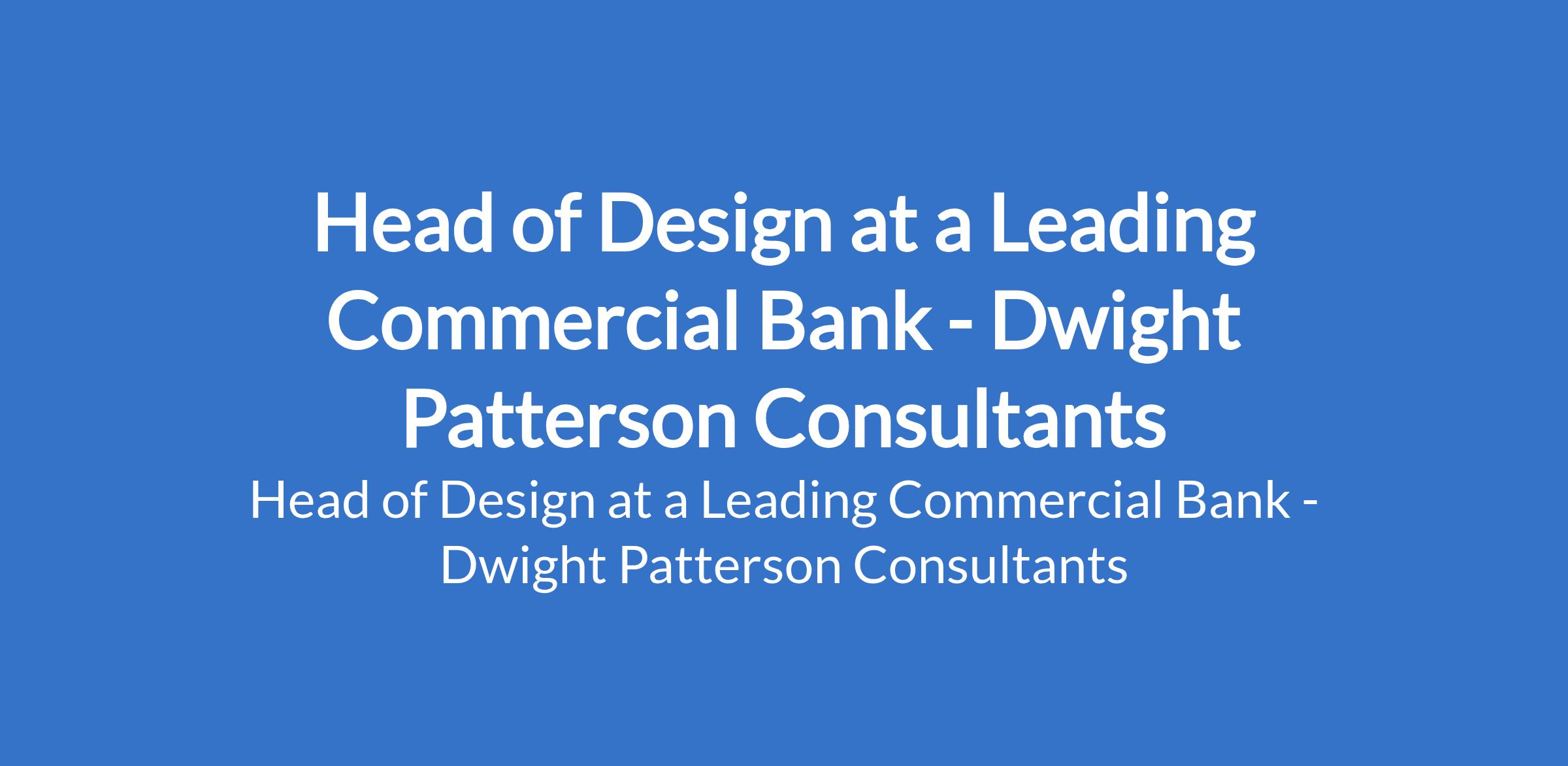 Head of Design at a Leading Commercial Bank - Dwight Patterson Consultants