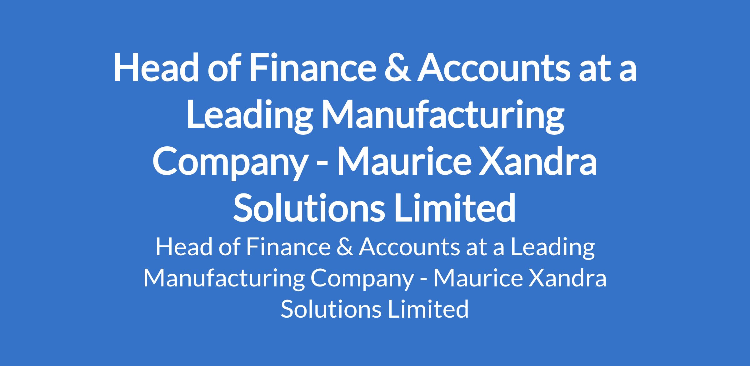 Maurice Xandra Solutions Limited - Our client, a manufacturing company is recruiting to fill the position of: Head of Finance & Accounts. The position is located in Nnewi, Anambra State. Interested candidates should possess a Bachelors Degree / HND in Finance, Accounting, Economics with 3-5 years of progressive experience in finance, accounting, or corporate strategy, with at least 1 year in a leadership role.