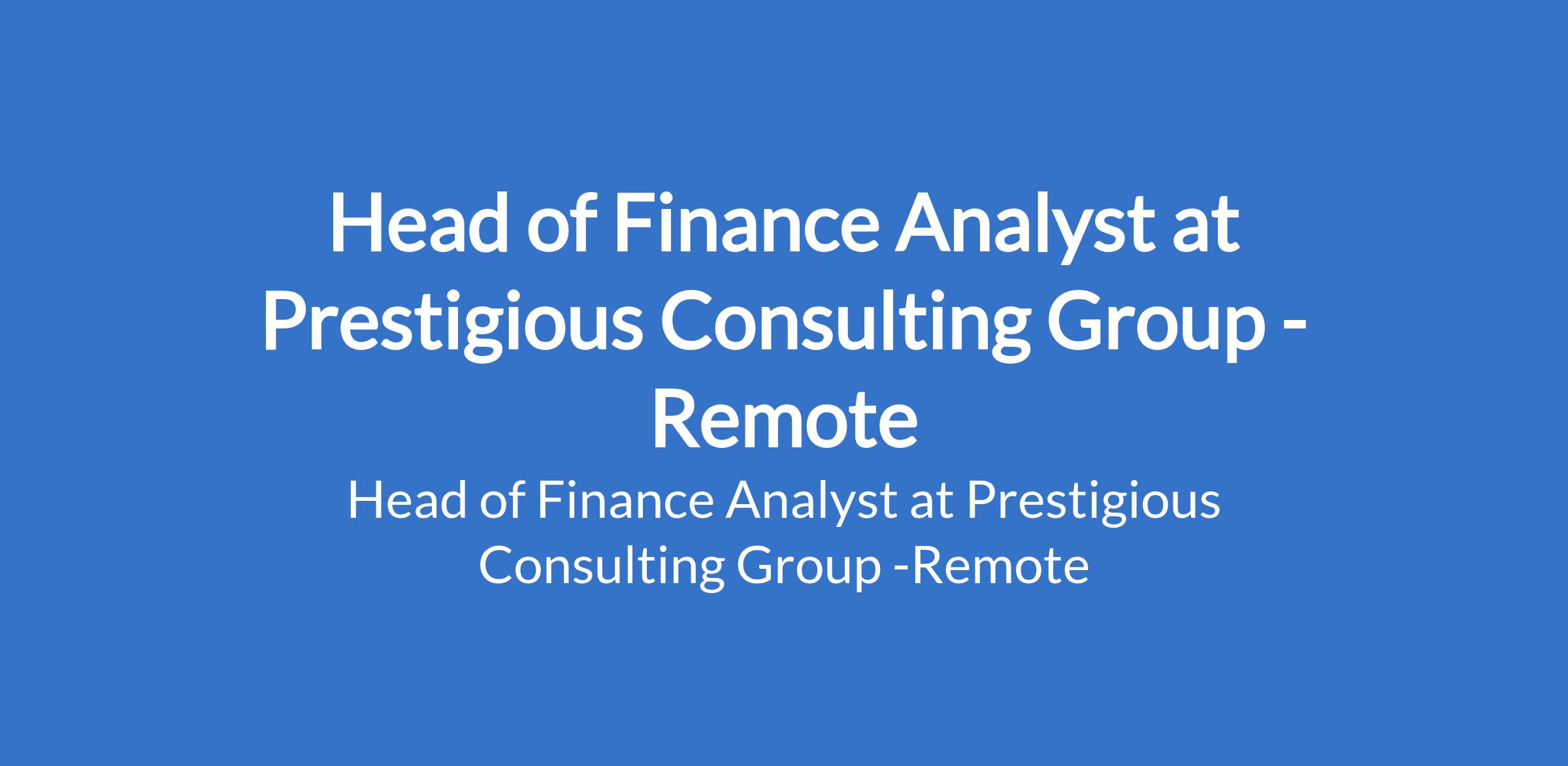 Prestigious Consulting Group is recruiting to fill the position of: Head of Finance Analyst. The position is located in Lagos State. Salary: N700,000 - N800,000 Monthly. Interested candidates should possess a Bachelors Degree in Finance, Accounting, Economics, or a related field with 810 years experience, with at least 3 years in a senior leadership role.