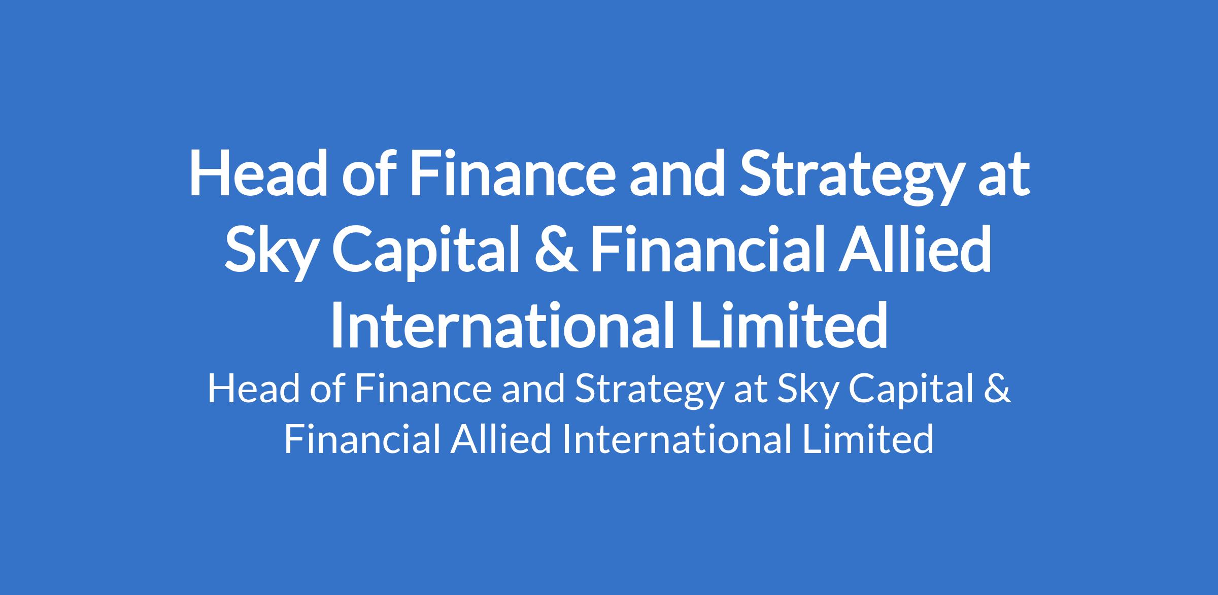 Sky Capital & Financial Allied International Limited is recruiting to fill the position of: Head of Finance and Strategy. The position is located in Lagos State. Interested candidates should possess a Bachelors Degree in Finance, Accounting, Economics, or a related field, professional certification such as ACA, ACCA, CPA, CFA, ACIS or equivalent with 8 - 10 years of experience in senior financial management roles within the banking or financial services sector.