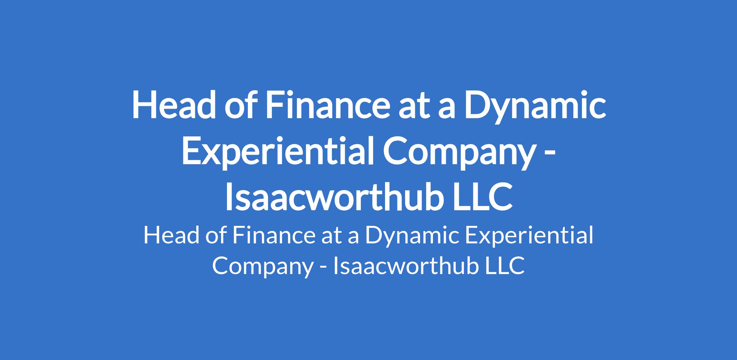 Isaacworthub LLC - Our client, a dynamic experiential company is recruiting to fill the position of: Head of Finance. The position is located in Lagos State. Interested candidates should possess relevant qualifications, ACA / ACCA / CPA qualified (mandatory) with 8+ years of progressive finance experience.
