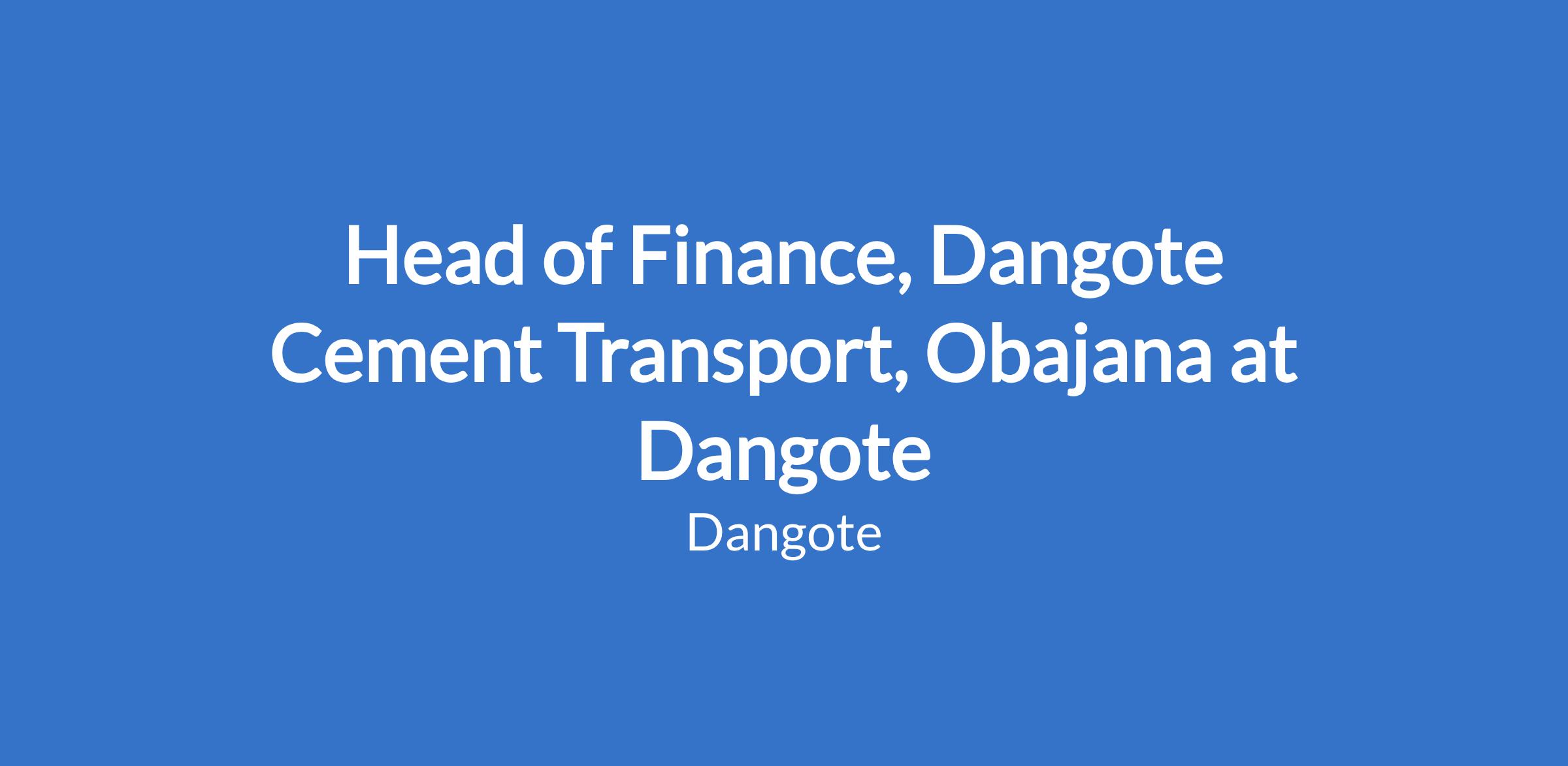 Head of Finance, Dangote Cement Transport, Obajana at Dangote