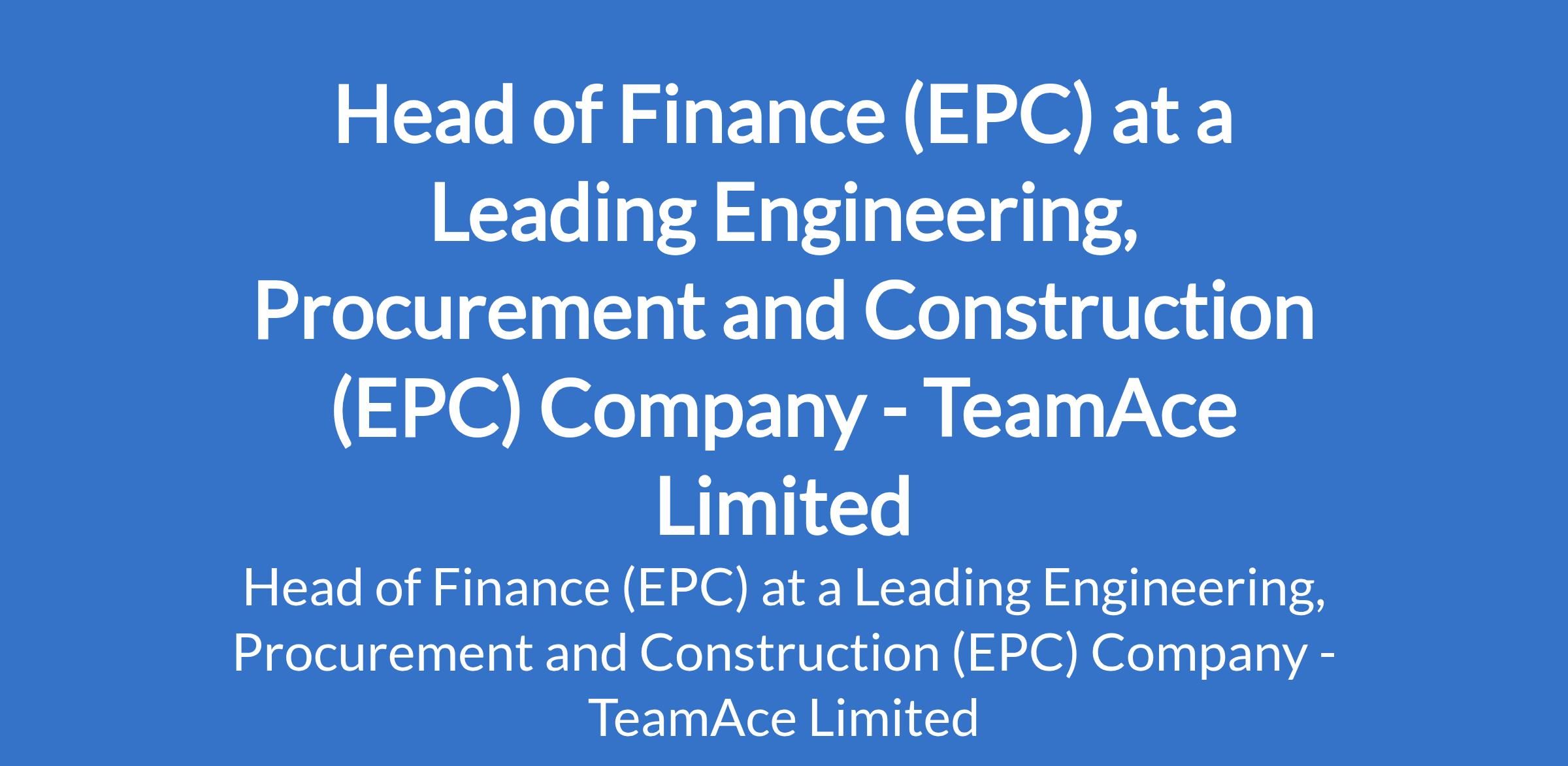 TeamAce Limited - Our client, a leading Engineering, Procurement and Construction (EPC) company, is recruiting to fill the position of: Head of Finance (EPC). The position is located in Abule Egba, Lagos State. As the Head of Finance, you will be responsible for the strategic planning, implementation, management, and running of all financial activities of the company. Salary: N900,0000 - N1,000,000 monthly. Interested candidates should possess a Bachelors Degree in Accounting, Finance, Economics, or related disciplines (Chartered Accountant (ICAN, CPA) required; MBA is highly desirable) with a minimum of 10 years progressive finance experience, with proven leadership and management exposure.