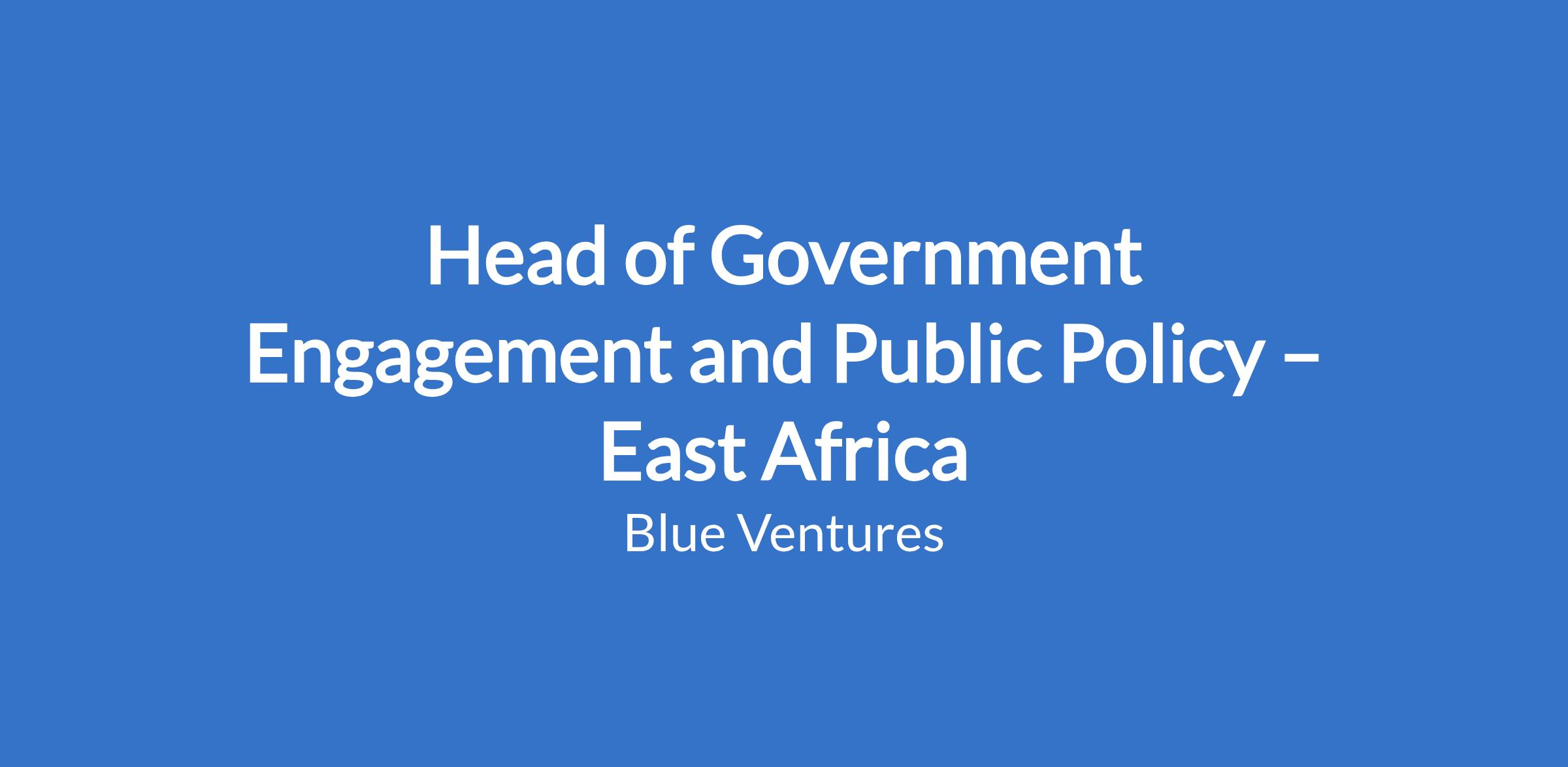 The Head of Government Engagement and Public Policy - East Africa will play a critical role in developing and leading Blue Ventures' engagement with government authorities at all levels. This role involves advocating for policies that support community -based fisheries management, ensuring existing policy is effectively implemented, and identifying strategic partnerships with government agencies.