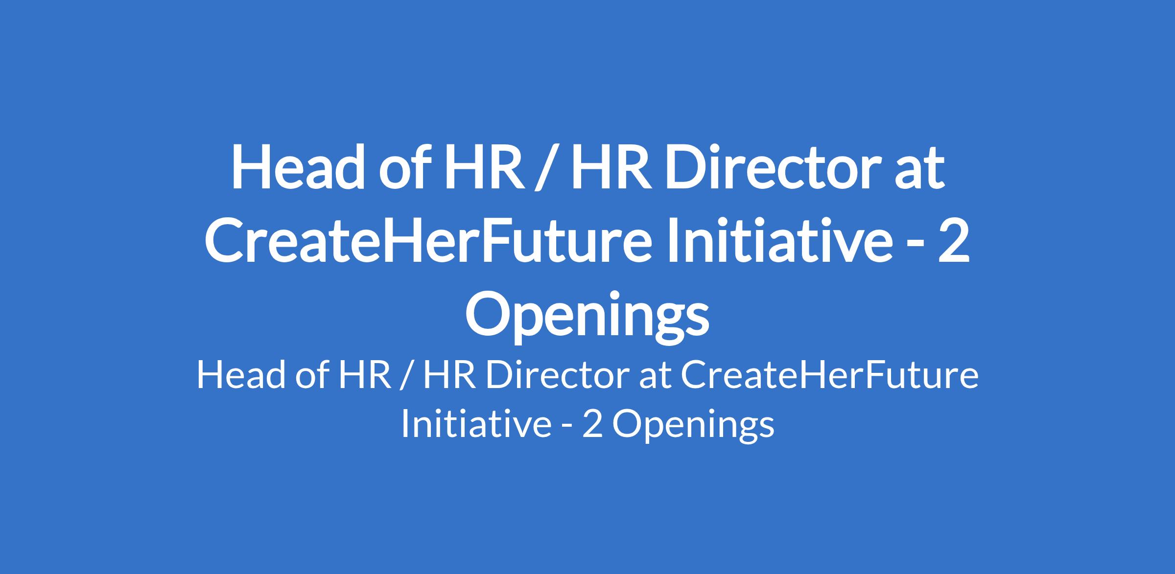CreateHerFuture Initiative is recruiting to fill the position of: Head of HR / HR Director. The position is located in Abuja / Lagos State. Interested candidates should possess a Bachelor's or Master's degree in a related field with a minimum of 5 years of HR leadership experience.