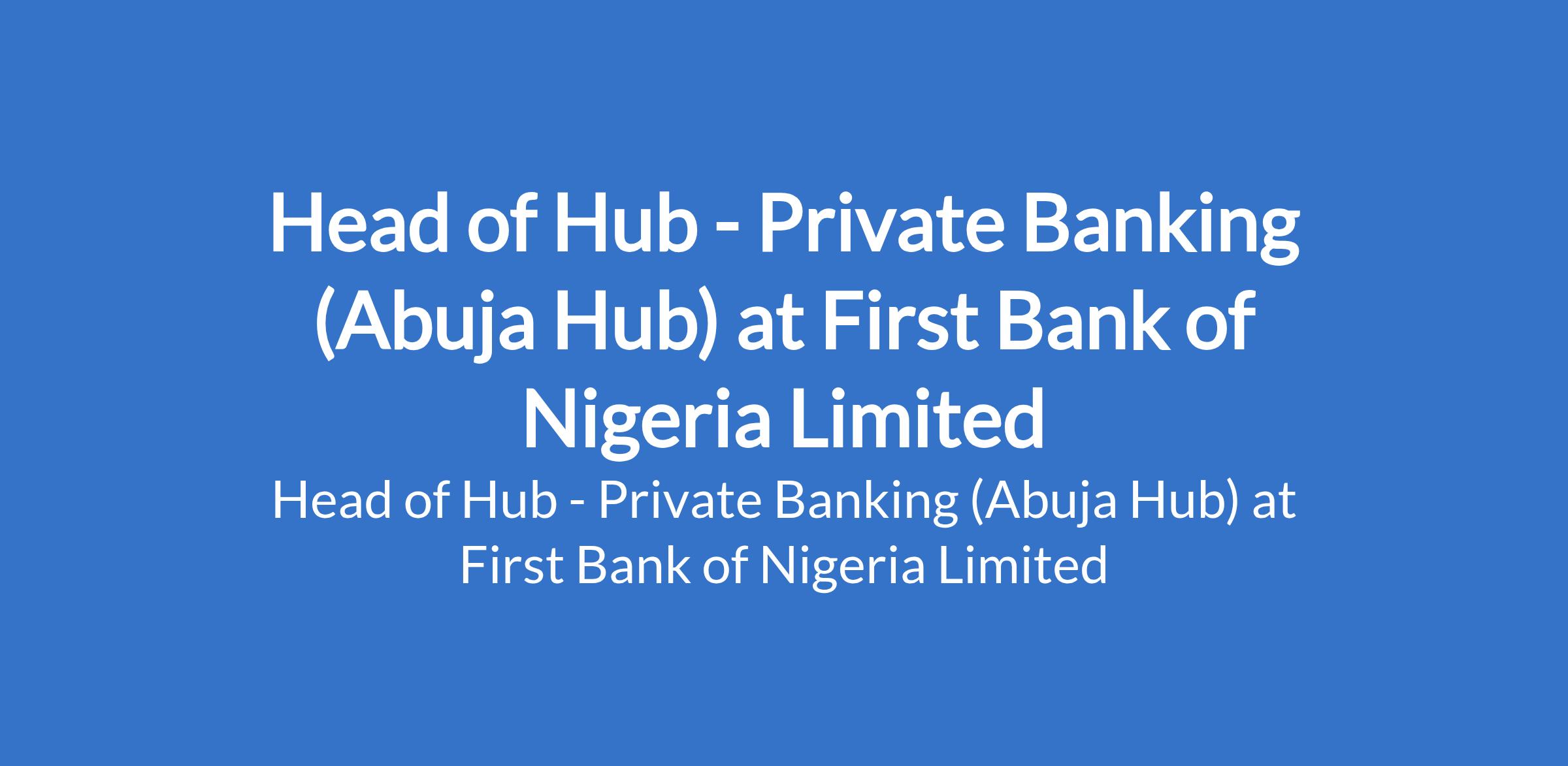 First Bank of Nigeria Limited is recruiting to fill the position of: Head of Hub - Private Banking. The position is located in Abuja. Interested candidates should possess a minimum of 2:2 undergraduate Degree with a minimum of 10 years working experience in banking or a related industry.
