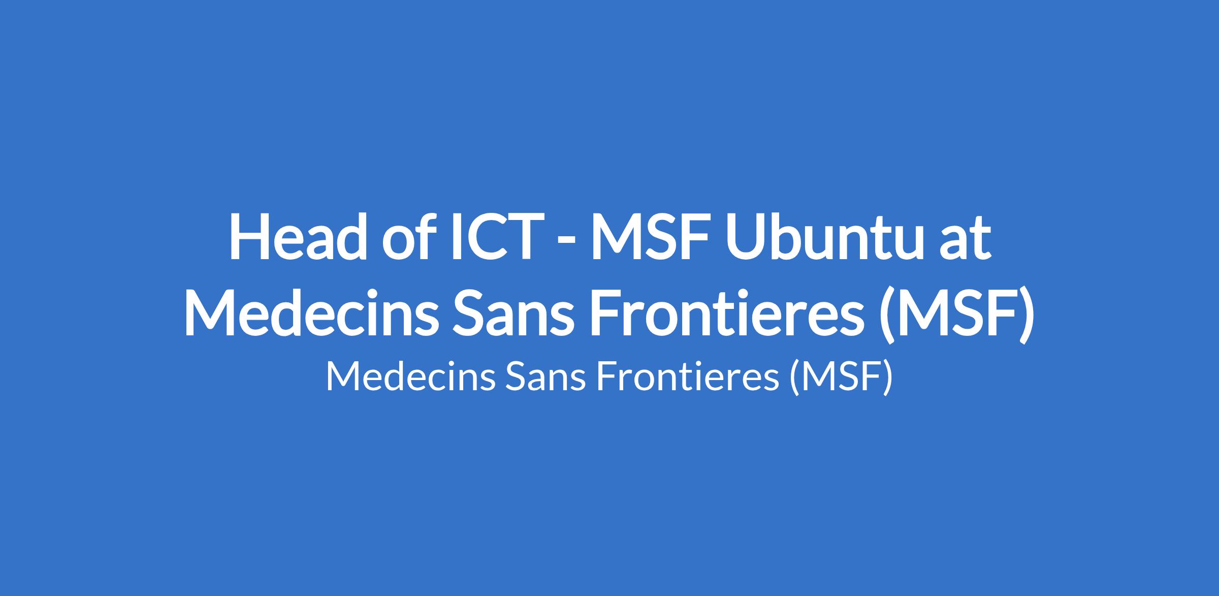 The Head of ICT is responsible for coordinating and enabling ICT services across MSF Ubuntu, including field operations and headÃÂâÃÂÃÂÃÂÃÂquarter support, ensuring that ICT effectively supports medical humanitarian action through interdependent collaboration with supporting and partner entities.