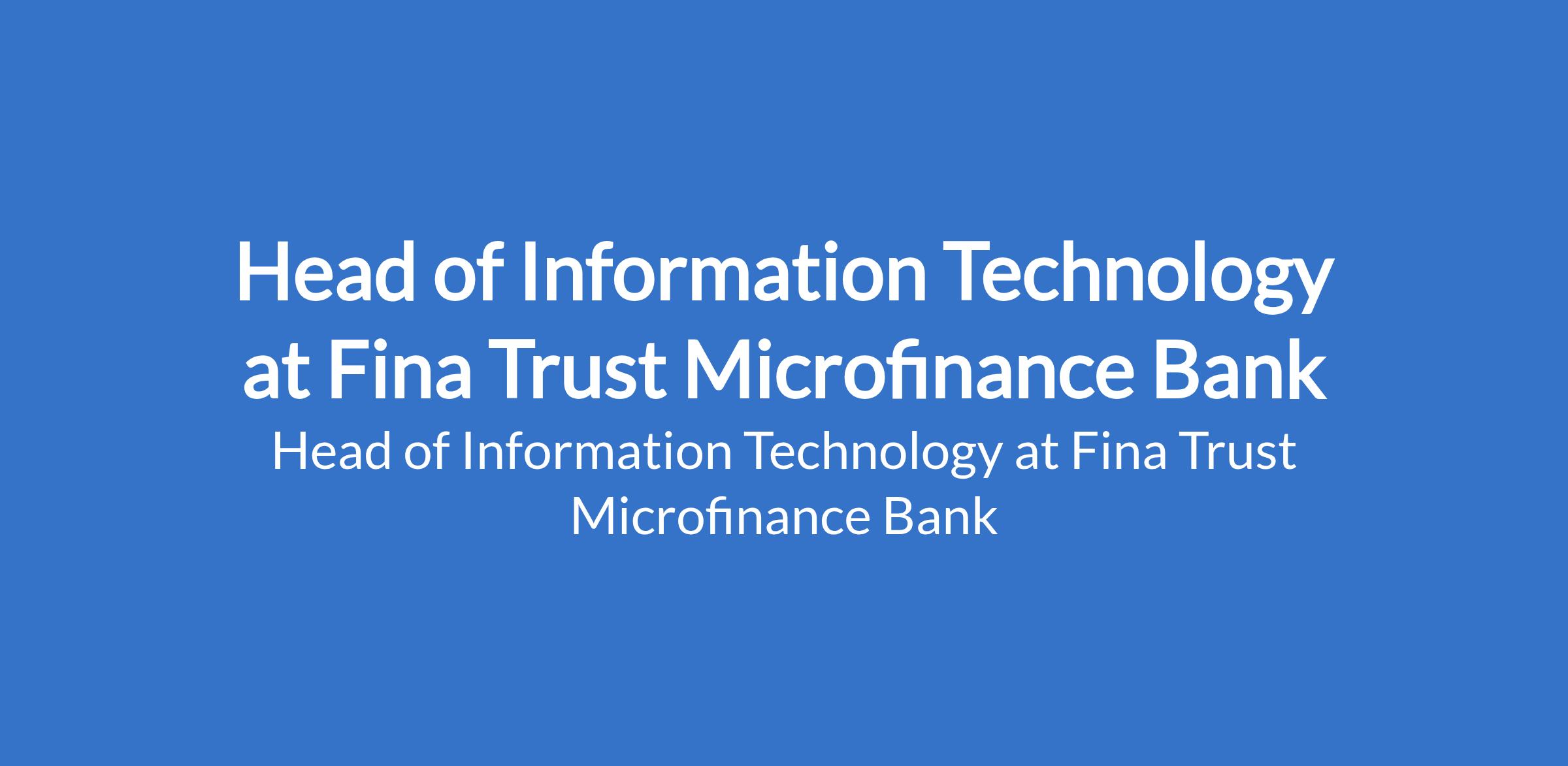 Fina Trust Microfinance Bank is recruiting to fill the position of: Head of Information Technology. The position is located in Lagos State. Salary: N1,000,000 - N1,500,000 per month. Interested candidates should possess a Bachelors Degree in Computer Science, Information Technology, Software Engineering, or related fields; MSc or MBA strongly preferred (demonstrated business and executivelevel maturity) with 1012 years total IT experience, with minimum 5 years in senior leadership(Head of IT, IT Manager, CISO, or equivalent).