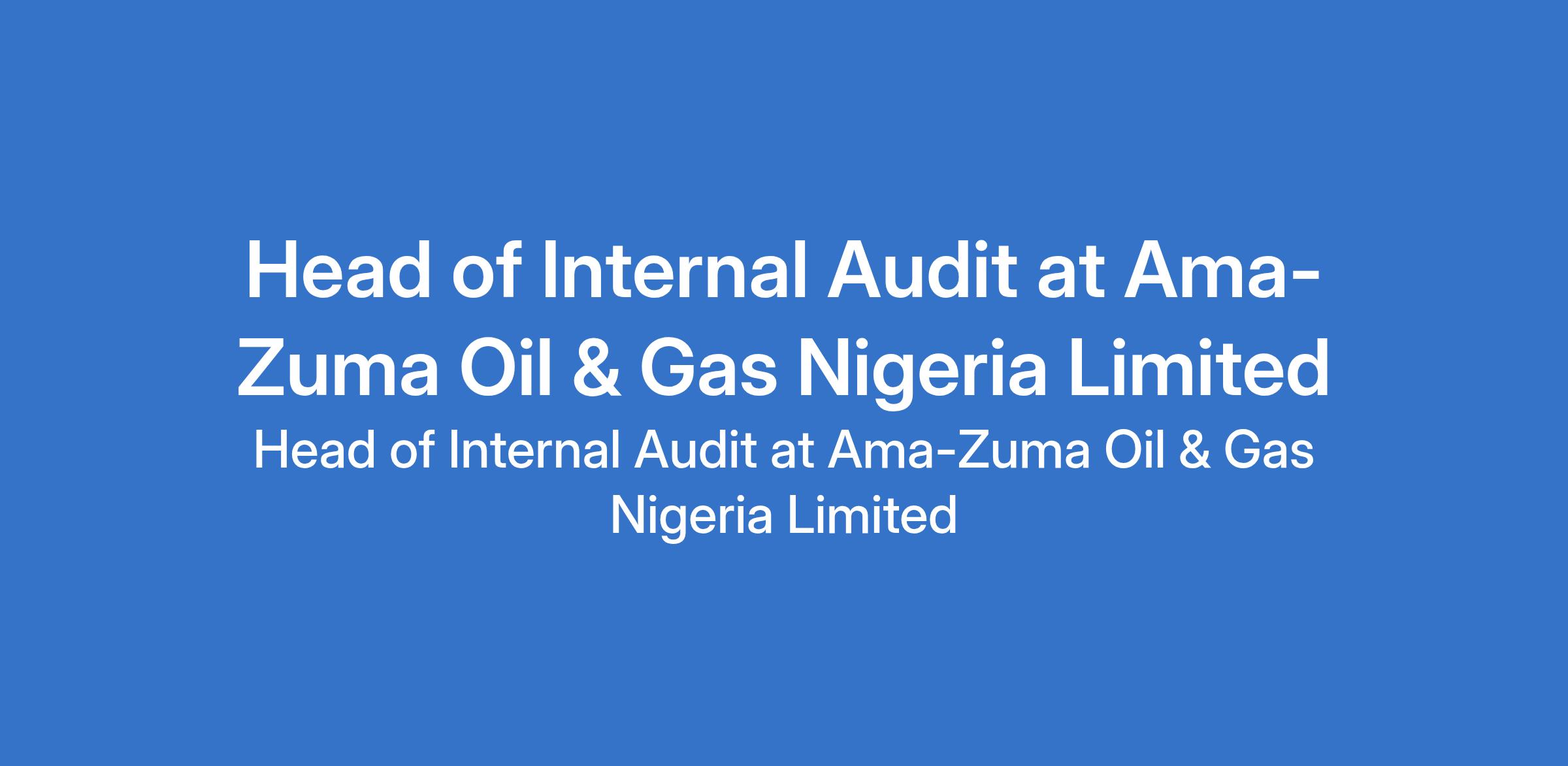 Ama-Zuma Oil & Gas Nigeria Limited is recruiting to fill the position of: Head of Internal Audit. The position is located in Abule-Egba, Lagos State. Interested candidates should possess an HND / Bachelor's Degree, Master Degree with 15 - 20 years proven work experince in the same role.