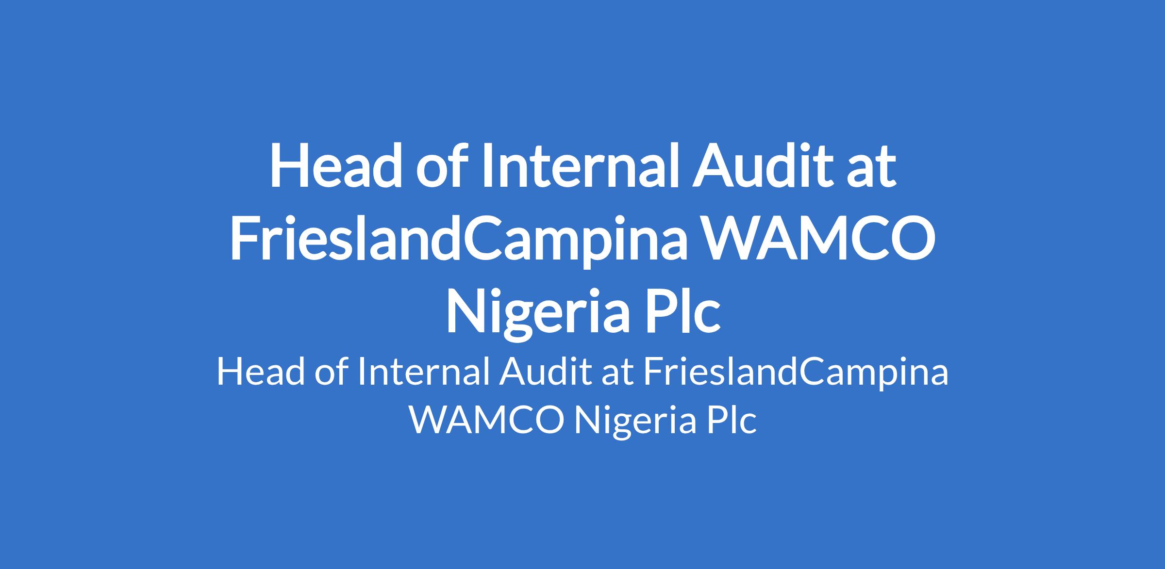 Head of Internal Audit at FrieslandCampina WAMCO Nigeria Plc