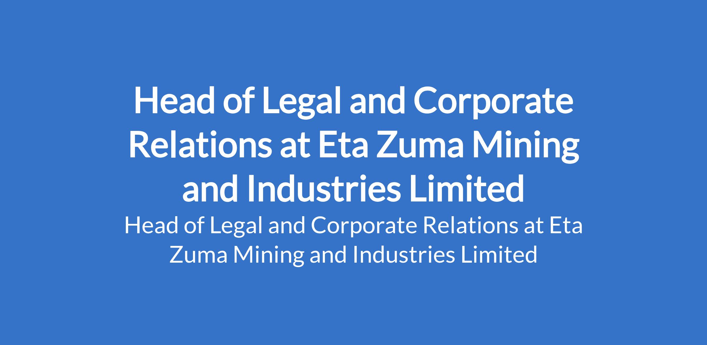 Eta Zuma Mining and Industries Limited is recruiting to fill the position of: Head of Legal and Corporate Relations. The position is located in Abuja (FCT). Interested candidates should possess a Bachelor of Laws (LL.B) Degree from a recognized institution with 1215 years of post-call experience, with at least 57 years in a senior leadership role (Head of Legal / Senior Legal Counsel / Legal Director). A Master's Degree (LL.M, MBA, or related field) is an added advantage.