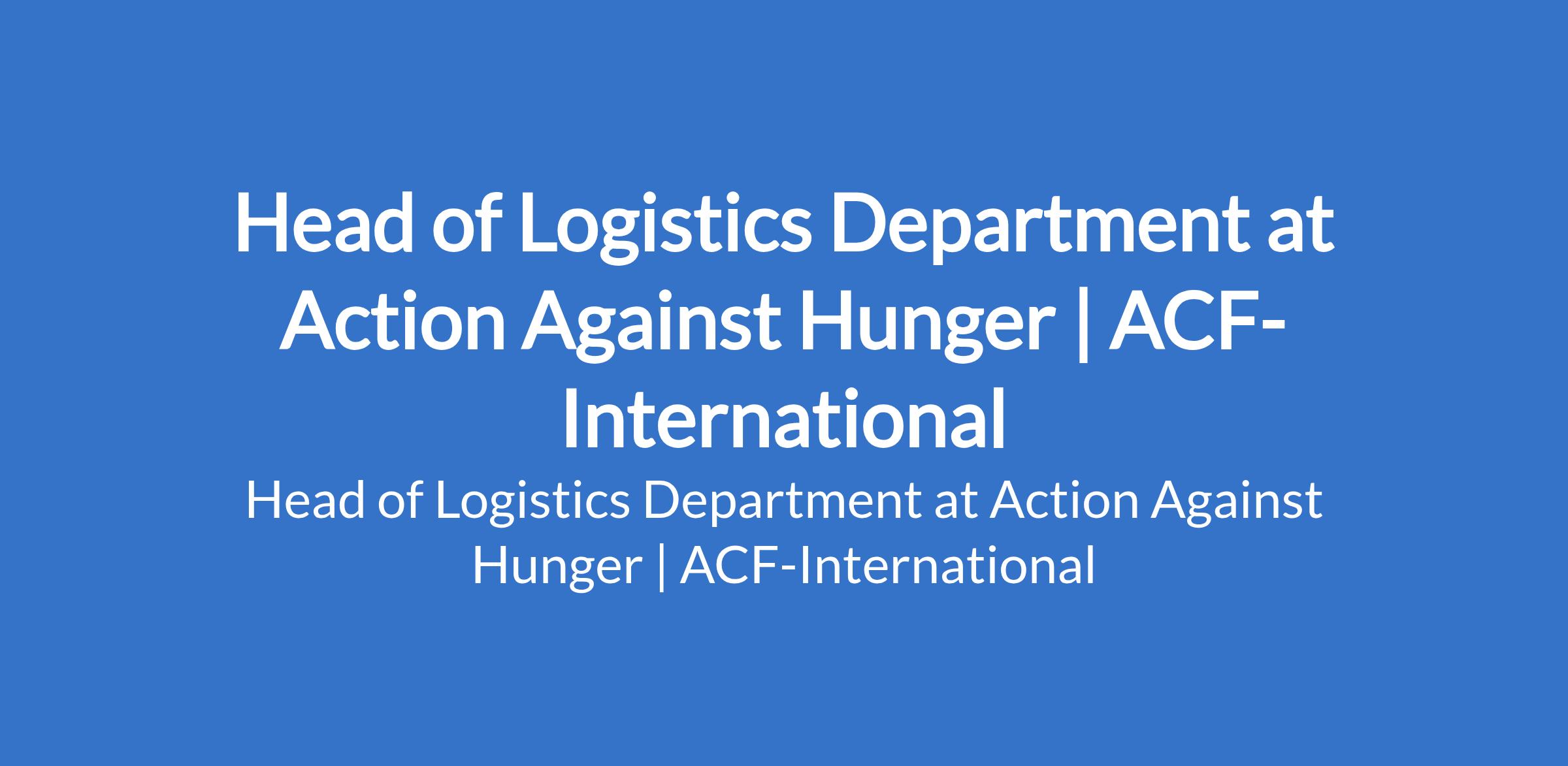 Action Against Hunger | ACF-International is recruiting to fill the position of: Head of Logistics Department. The position is located in Abuja. Interested candidates should possess a Master's Degree in Logistics with over 3 years of experience working on logistics projects, in humanitarian contexts.