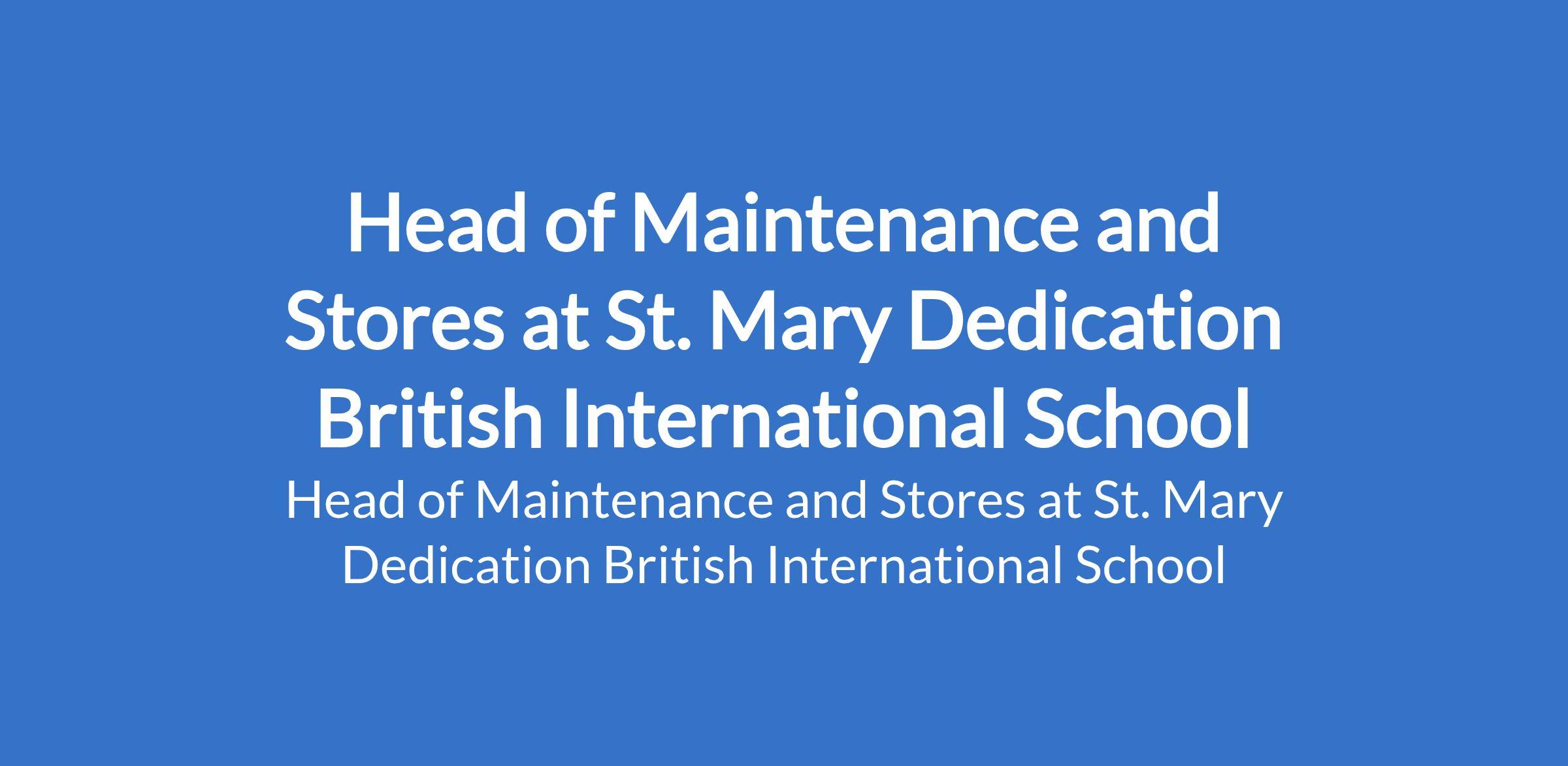 Head of Maintenance and Stores at St. Mary Dedication British International School