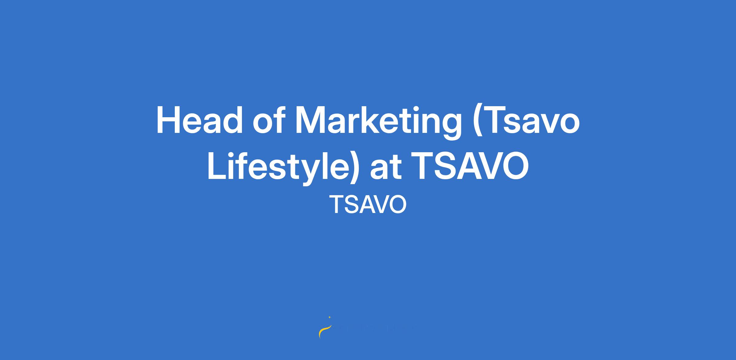 Head of Marketing (Tsavo Lifestyle) at TSAVO