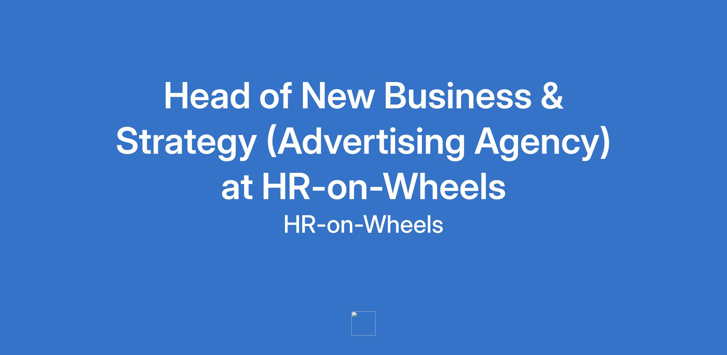 Head of New Business & Strategy (Advertising Agency) at HR-on-Wheels
