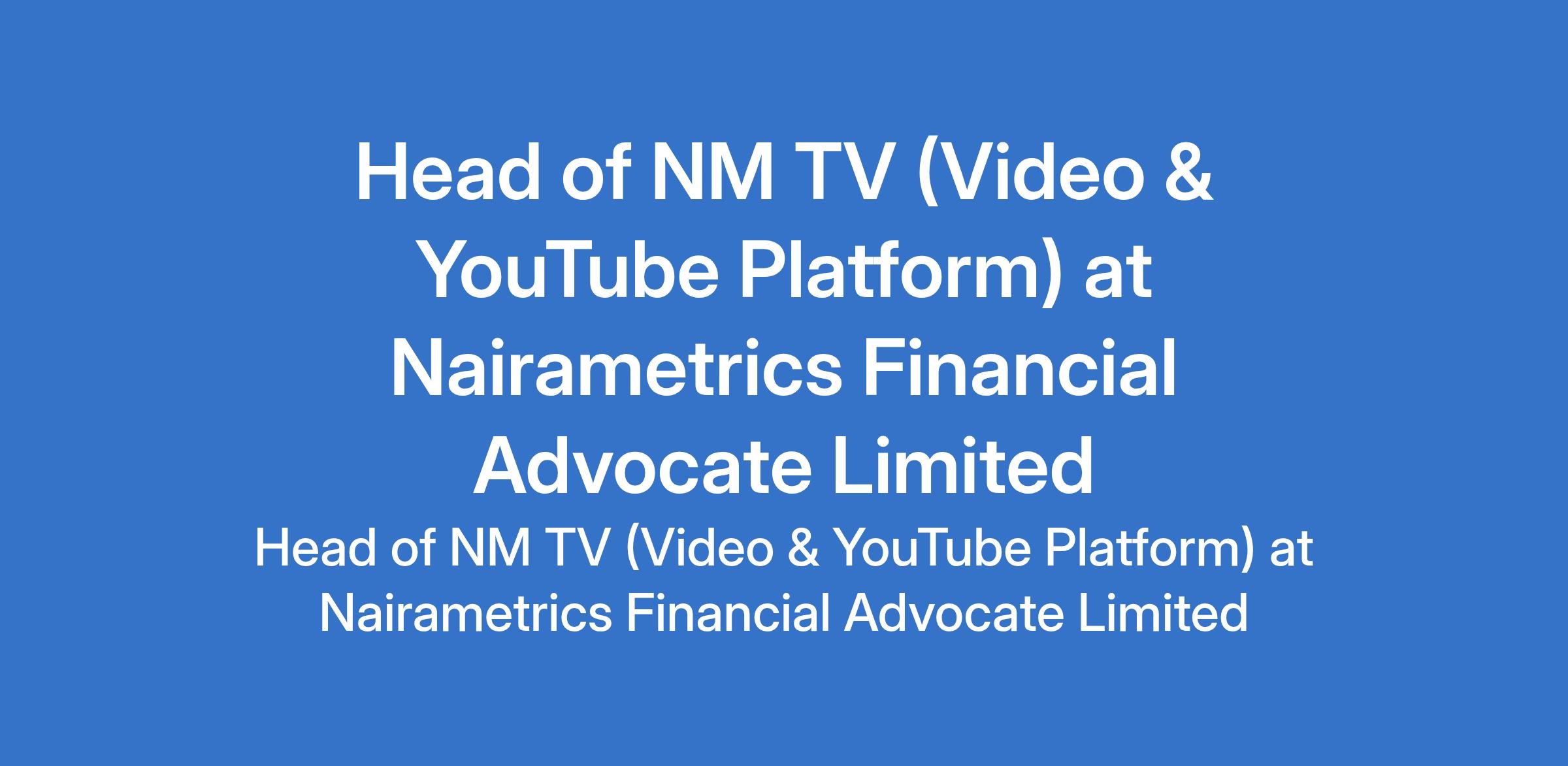 Nairametrics Financial Advocate Limited is recruiting to fill the position of: Head of NM TV (Video & YouTube Platform). The position is located in Lekki Phase 1, Lagos State. Interested candidates should possess a Bachelors Degree in Media, Communications, Journalism, Film, or a related field with 5+ years experience in digital media, video production, or content leadership roles.