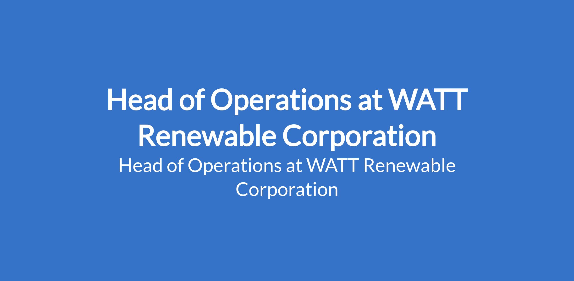 WATT Renewable Corporation is recruiting to fill the position of: Head of Operations. The position is located in Lagos State. Interested candidates should possess a Bachelors Degree in Engineering / Operations (or related field) with 812 years of operational leadership experience in energy/power/infrastructure.