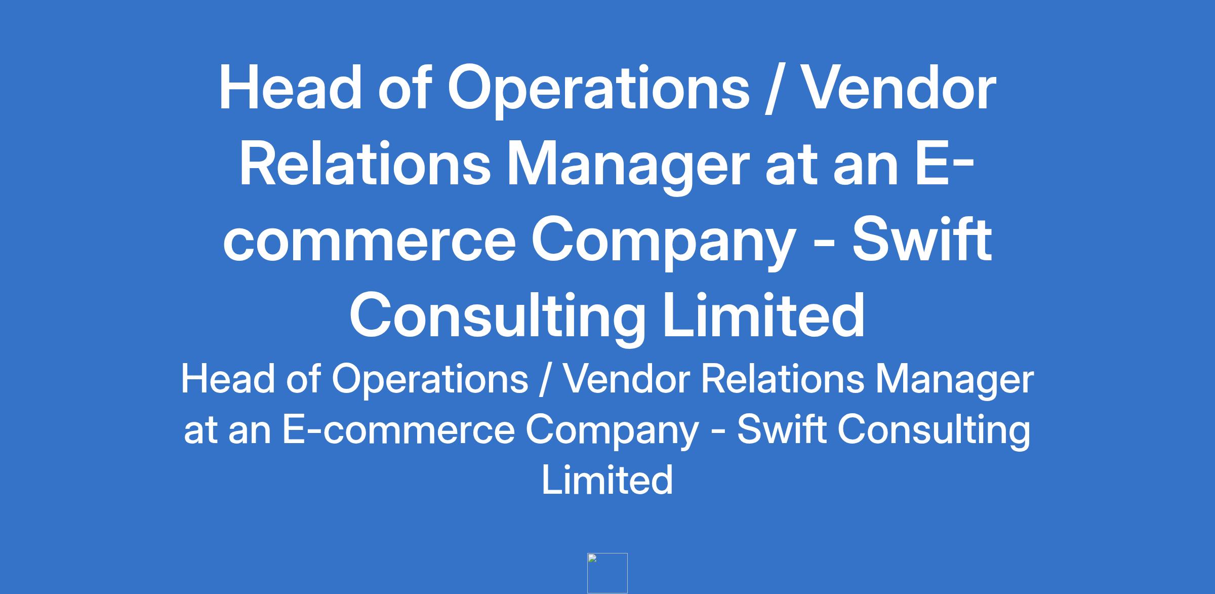Swift Consulting Limited - Our client in the E-commerce Industry is recruiting to fill the position of: Head of Operations/ Vendor Relations Manager. The position is located in Anambra State. Interested candidates should possess a Bachelors Degree in Business Administration, Operations Management, Supply Chain, or related field with 4-5 years of proven experience in E-commerce operations, vendor management, supply chain, or similar roles.