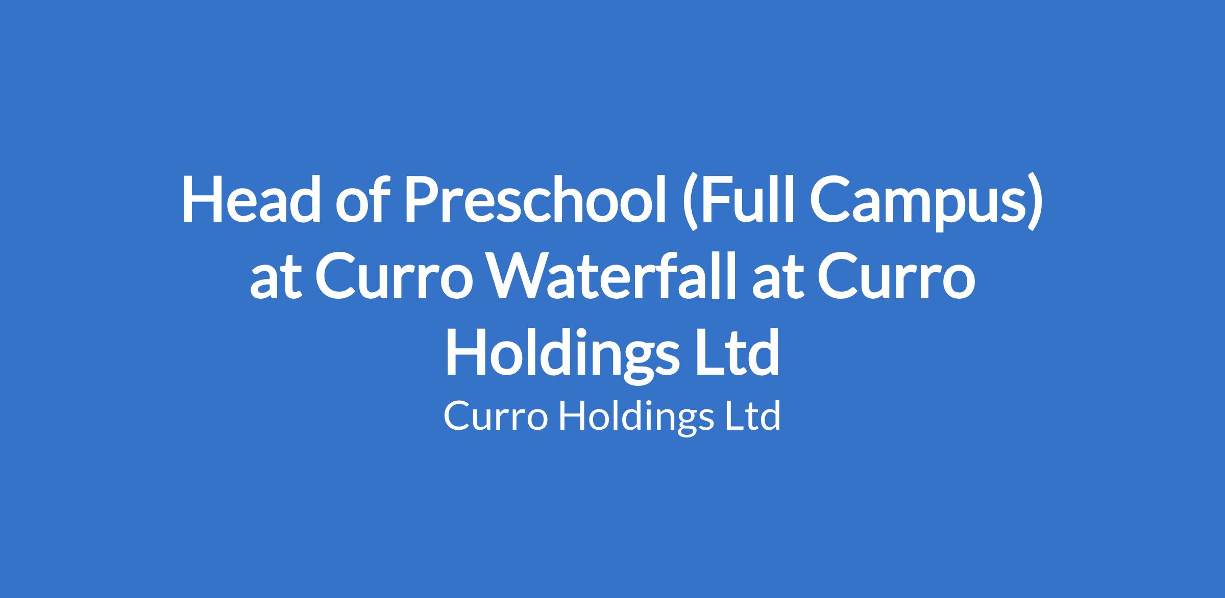 Head of Preschool (Full Campus) at Curro Waterfall at Curro Holdings Ltd