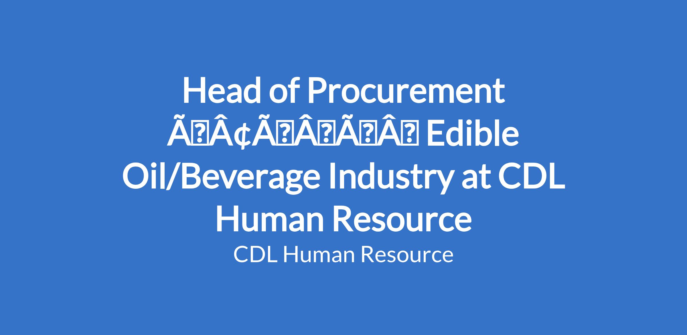 Head of Procurement âÃÂàEdible Oil/Beverage Industry at CDL Human Resource