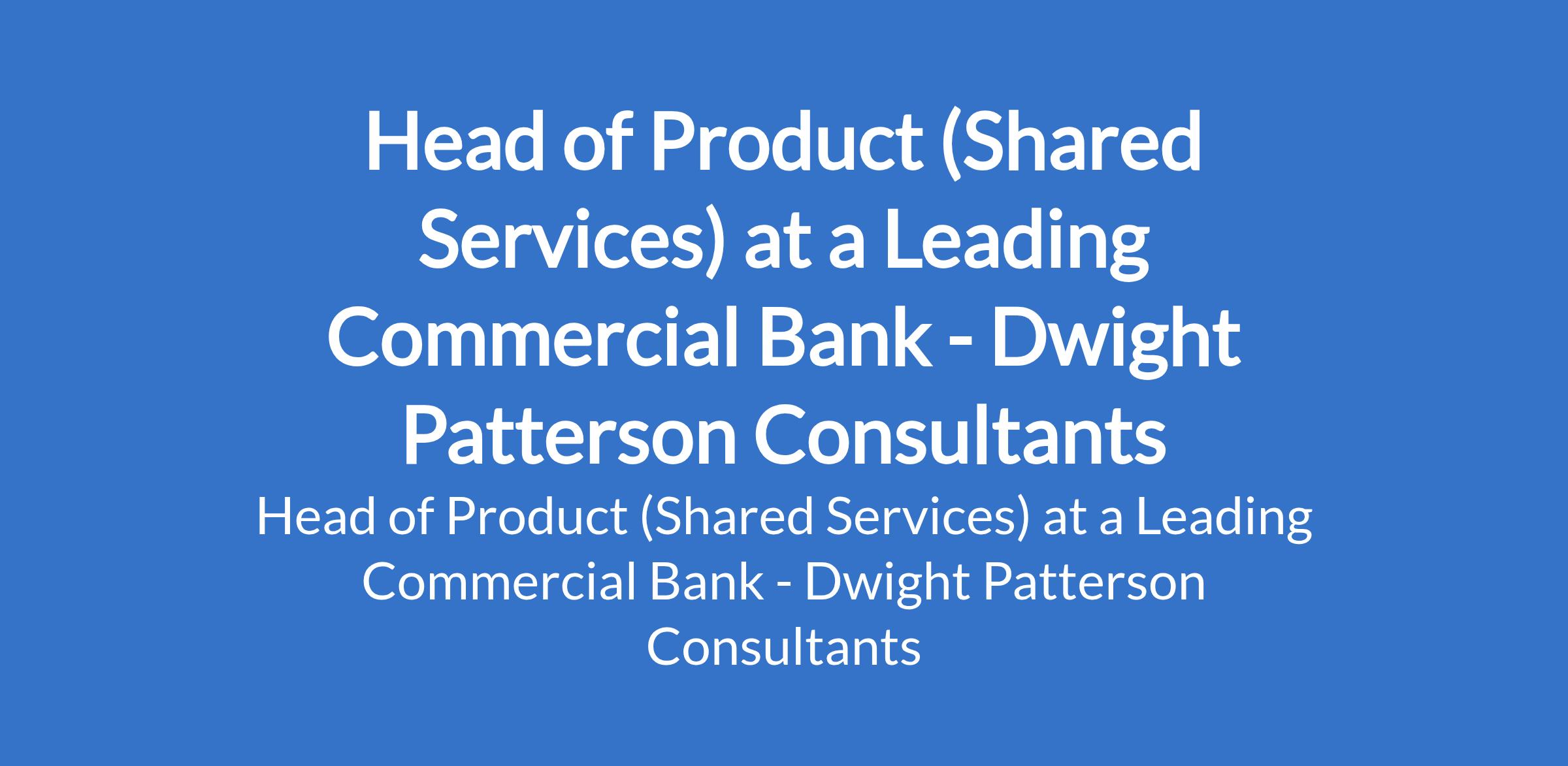 Dwight Patterson Consultants - Our client, a leading Commercial Bank is recruiting to fill the position of: Head of Product (Shared Services). The position is located in Lagos State. Interested candidates should possess relevant qualifications and experience.