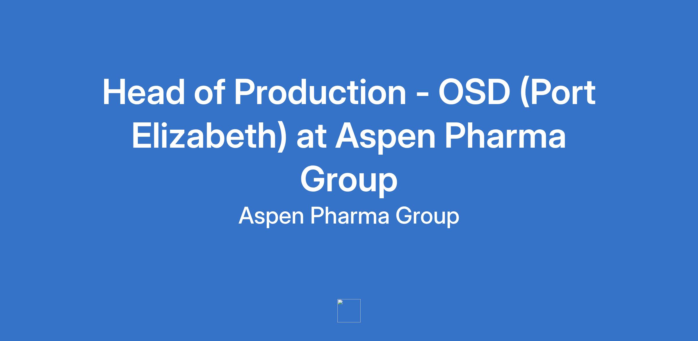 Head of Production - OSD (Port Elizabeth) at Aspen Pharma Group