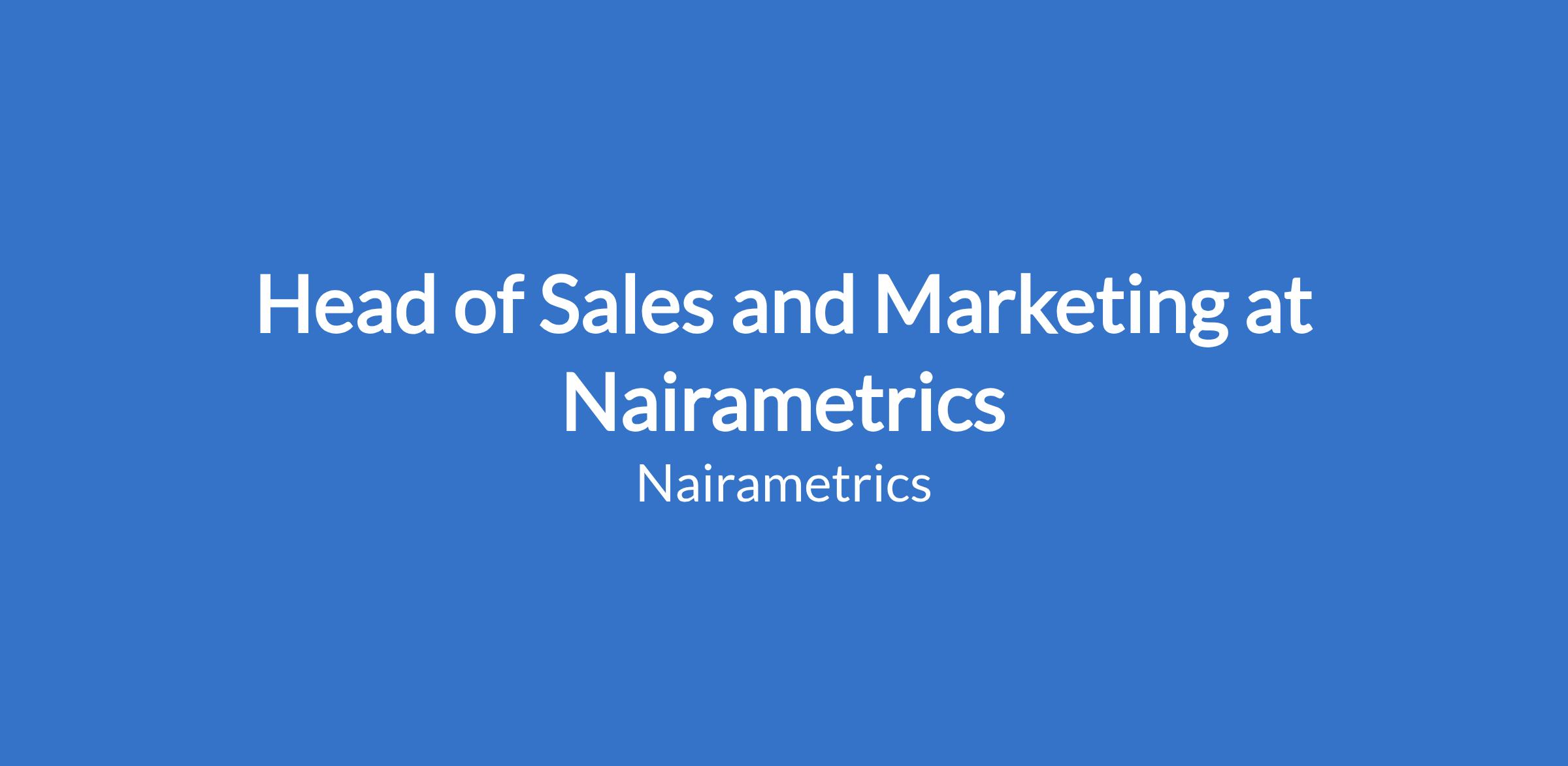 Nairametrics is looking to hire a Head of Sales & Marketing to lead and drive the company's revenue growth. This role combines both strategy and execution and is suited for someone who is comfortable building relationships, closing deals, and improving how the company positions and sells its services.