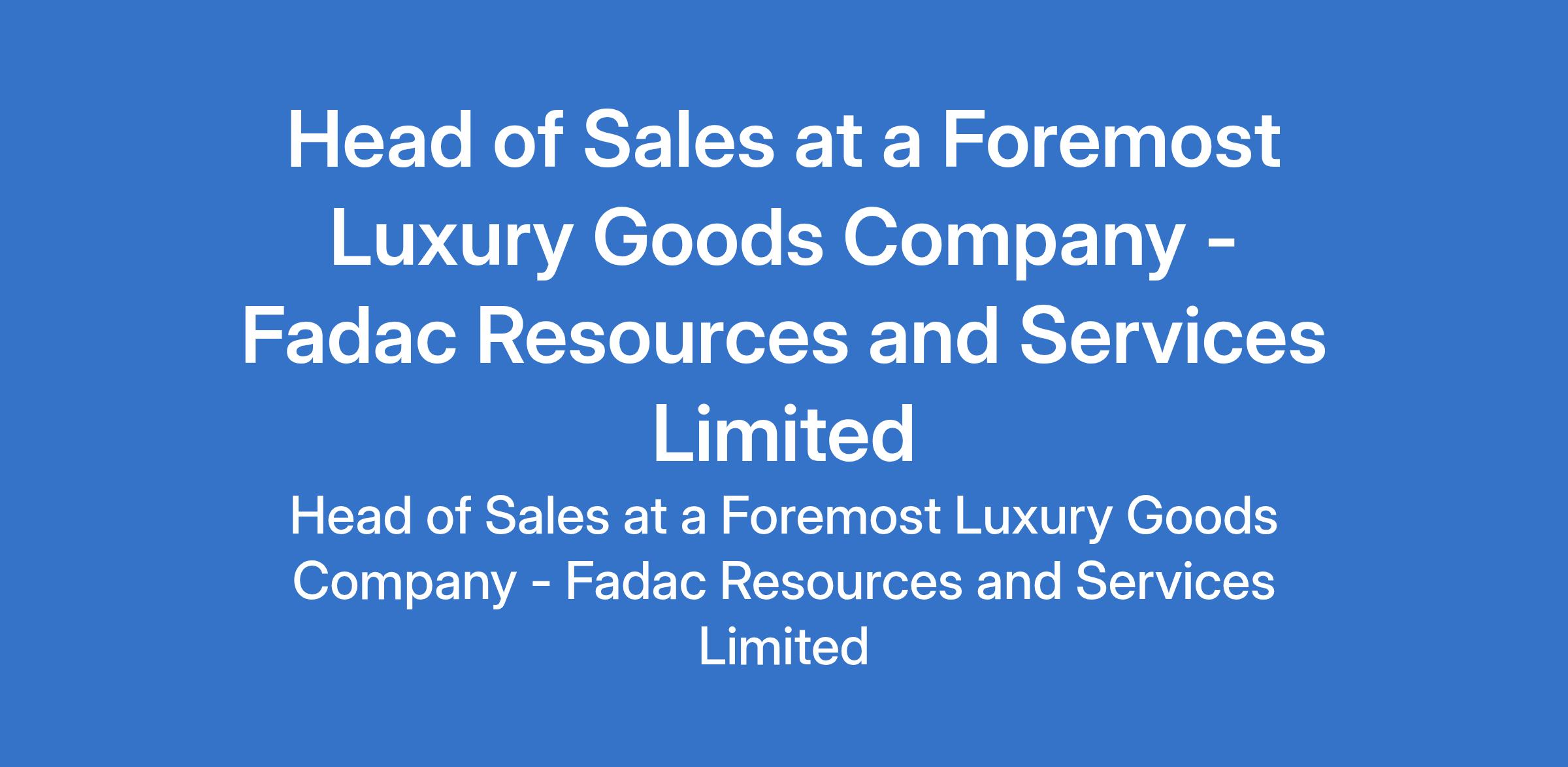Fadac Resources and Services Limited - Our client, foremost luxury goods company is recruiting to fill the position of: Head of Sales. The position is located in Lagos State. Salary: N2,000,000 monthly. Interested candidates should possess a Bachelors / M.Sc Degree in Marketing, Business Administration or related disciplines with 15+ years progressive experience in sales, especially in FMCG, Telecoms, banking, luxury retail, etc.