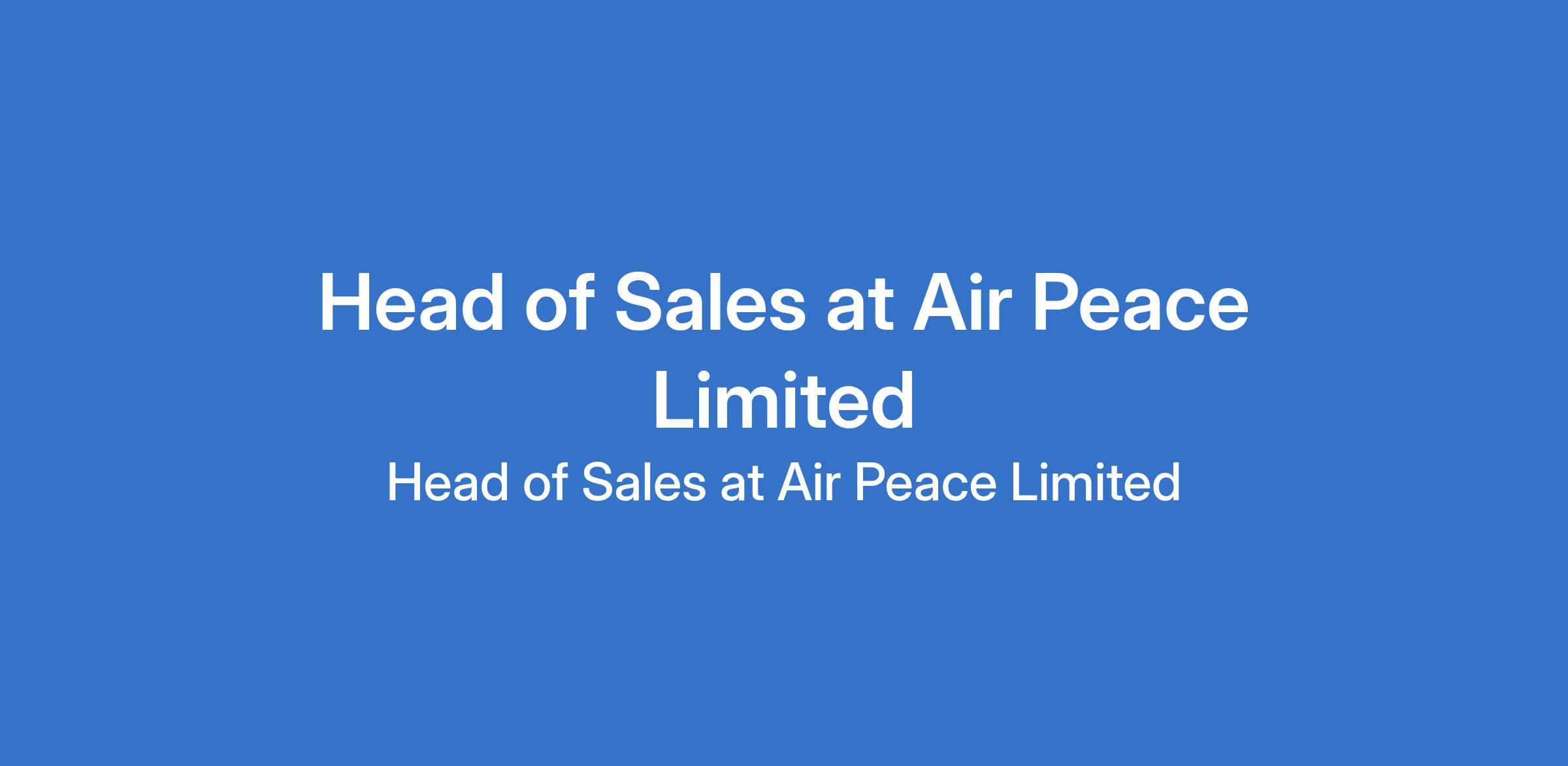 Air Peace Limited is recruiting to fill the position of: Head of Sales. The position is located in Lagos State. Interested candidates should possess a Bachelor's Degree in Business, Marketing, Economics, Aviation, Management or a related field with 1012 years of progressive airline commercial/sales experience, with at least 5 years in senior leadership (Country).