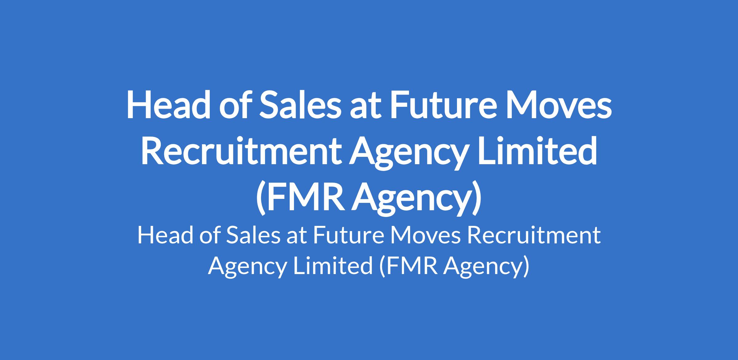 Future Moves Recruitment Agency Limited (FMR Agency) is recruiting to fill the position of: Head of Sales. The position is located in Ilupeju, Lagos State. Salary: N1,000,000 Monthly. Interested candidates should possess a Bachelors Degree in Business Administration, Marketing, or a related field with 5+ years of experience in sales leadership roles.