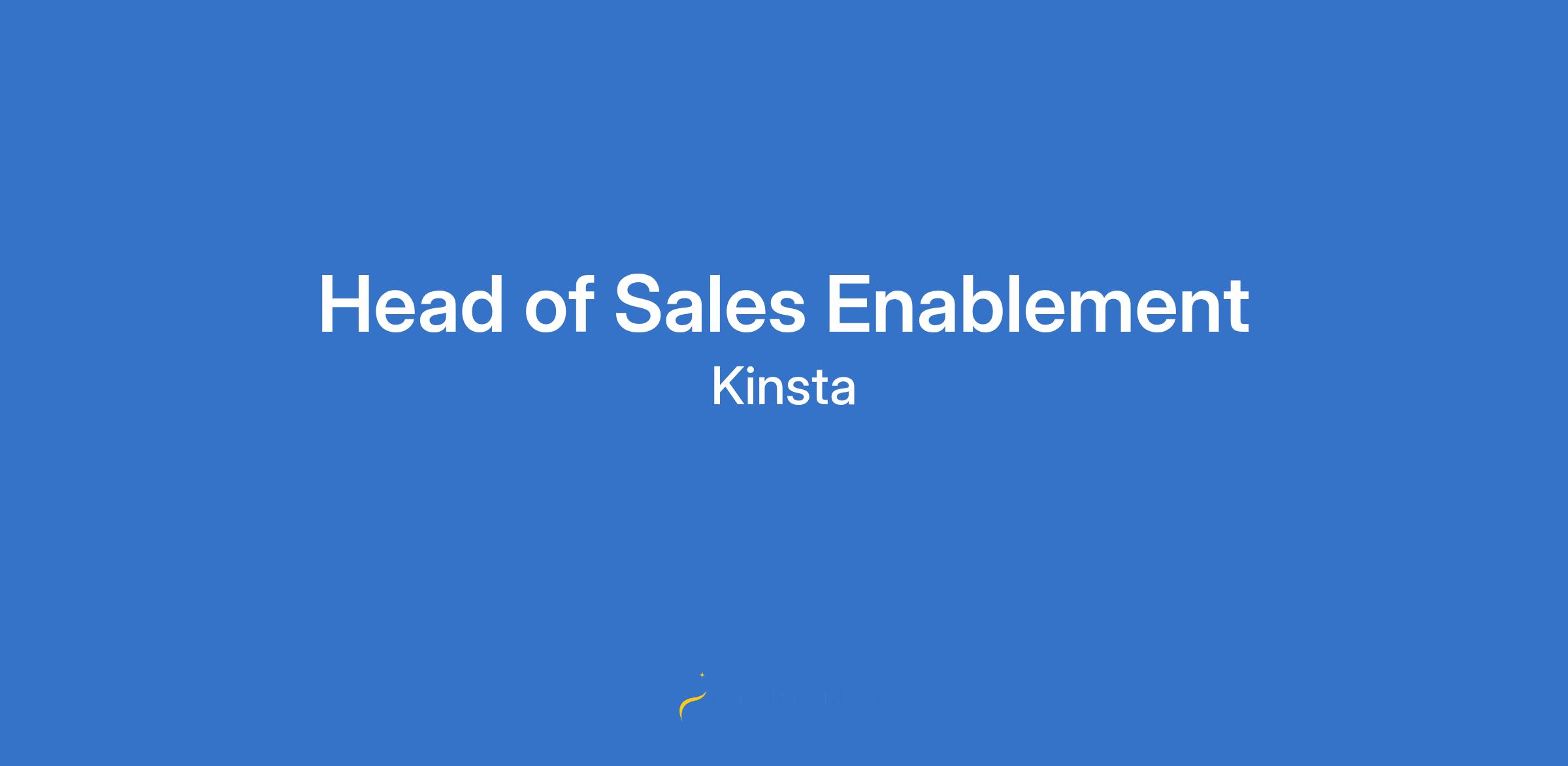 and remote-first.We are looking for a Head of Sales Enablement at Kinsta who will play a critical role in improving the productivity and effectiveness of our Sales organization. This position supports both new-hire onboarding and ongoing sales readiness initiatives, ensuring that our Account Executives, Account Managers, and Sales Development Representatives have the skills, tools, and content they need to consistently achieve and exceed their quotas.