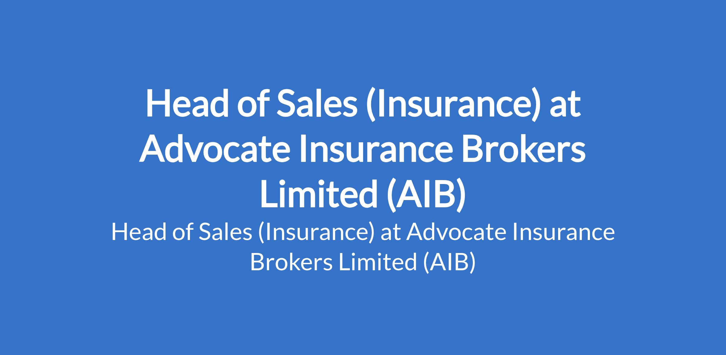 Advocate Insurance Brokers Limited (AIB) is recruiting to fill the position of: Head of Sales (Insurance). The position is located in Lagos State. Salary: N500,000 / month. Interested candidates should possess a Bachelors Degree in Business Administration, Insurance, Finance, Marketing, or a related field. A professional qualification (e.g., CIIN or other relevant insurance certifications) is a strong advantage with 710 years of relevant experience in insurance brokerage or insurance company sales, with at least 35 years in a senior sales leadership role.