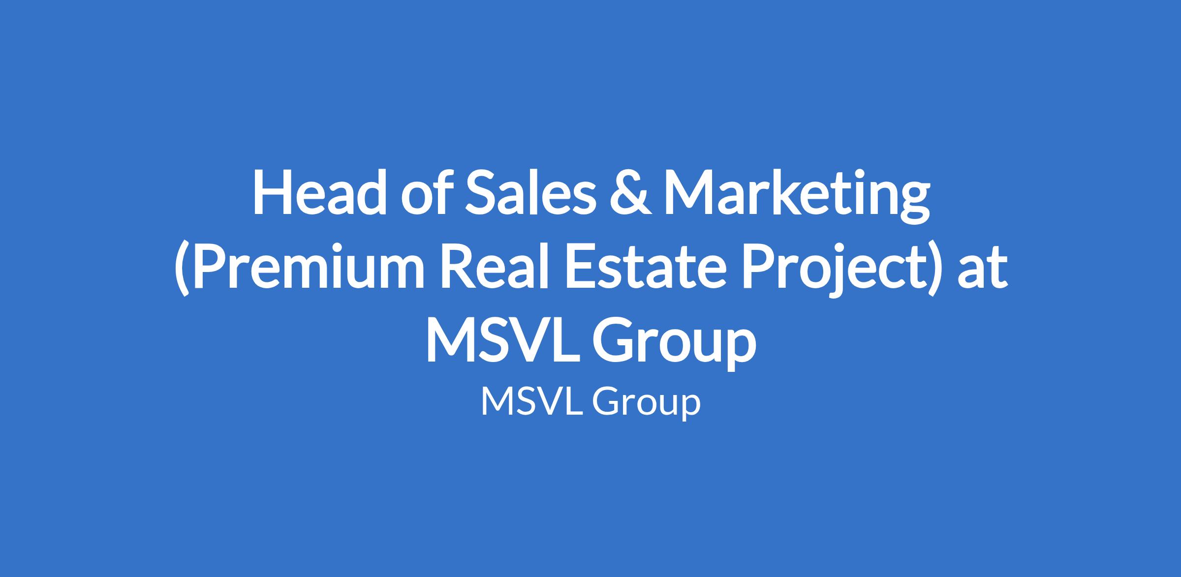 Head of Sales & Marketing (Premium Real Estate Project) at MSVL Group