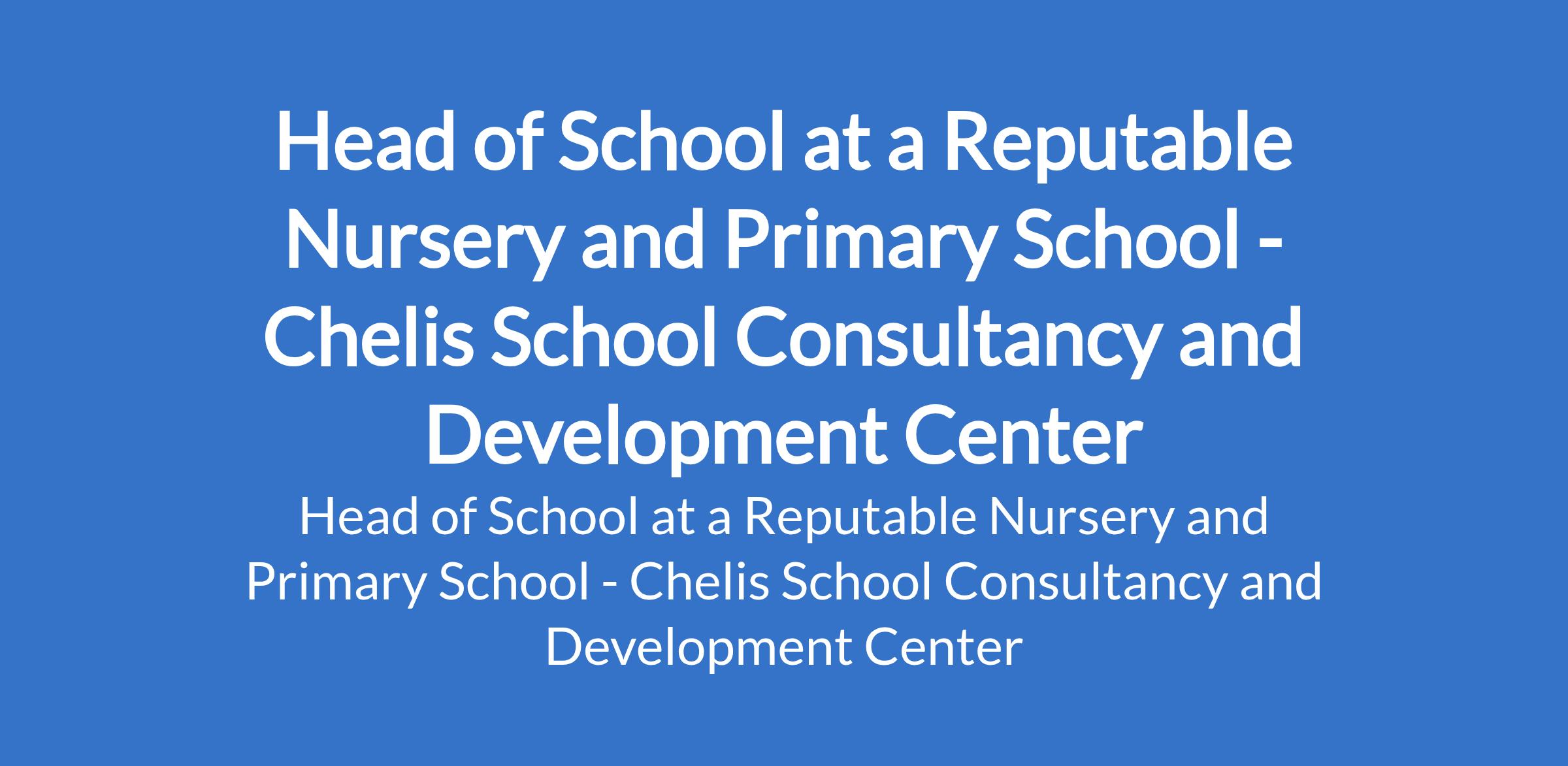Chelis School Consultancy and Development Center - Our client, a reputable Nursery and Primary school is recruiting to fill the position of: Head of School. The position is located in Port Harcourt, Rivers State. Salary: N150,000 - N2000,000 / month. Interested candidates should possess an M.Sc., B.Ed., or HND /B.Sc with PGDE as an added advantage with a minimum of 5 years of relevant working experience.