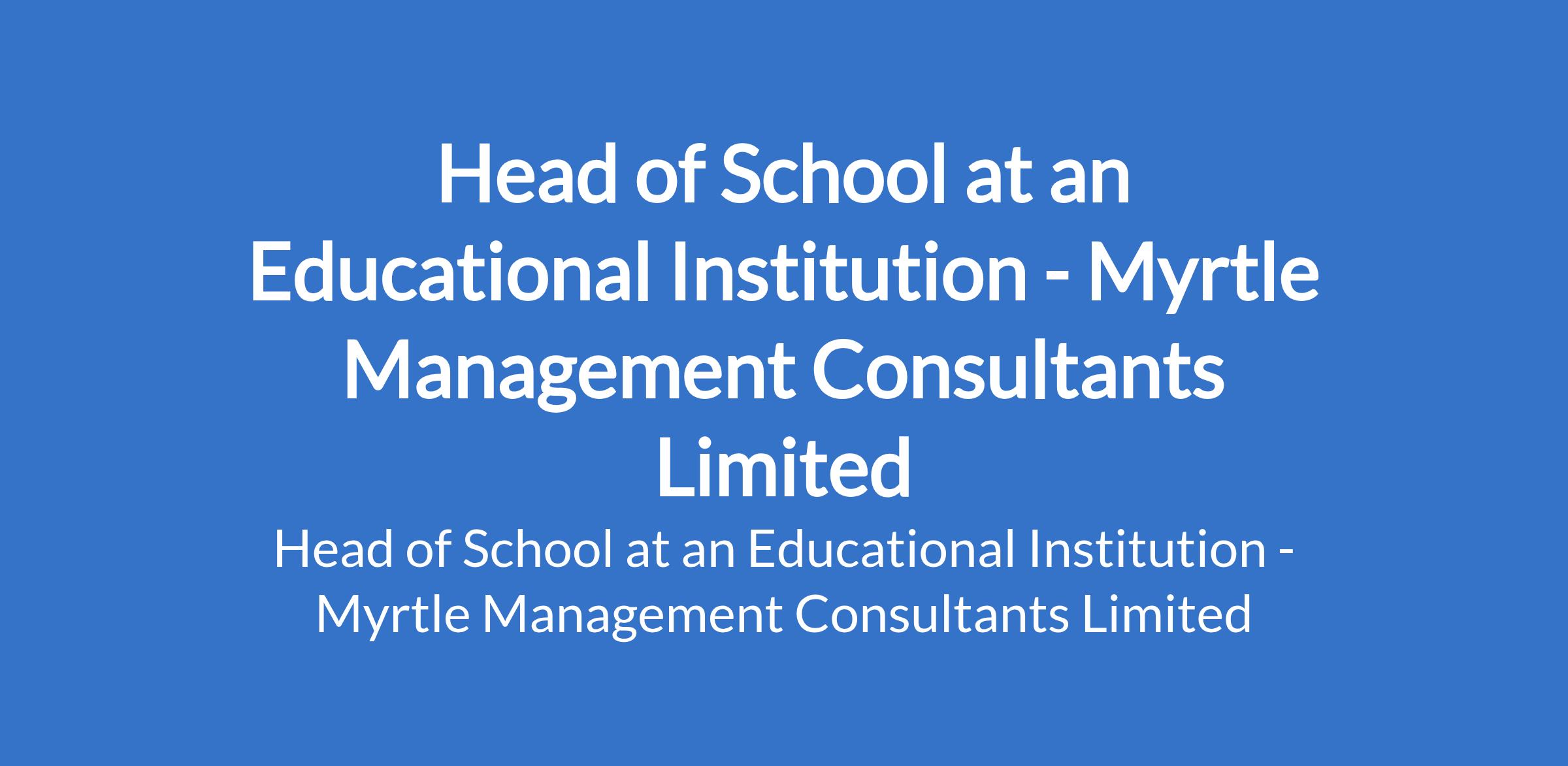 Myrtle Management Consultants Limited - Our client, an educational institution is recruiting to fill the position of: Head of School. The position is located in Lagos State. Interested candidates should possess a Bachelors Degree in related fields with 10+ years of experience in education, out of which 4 years as a Head of School.