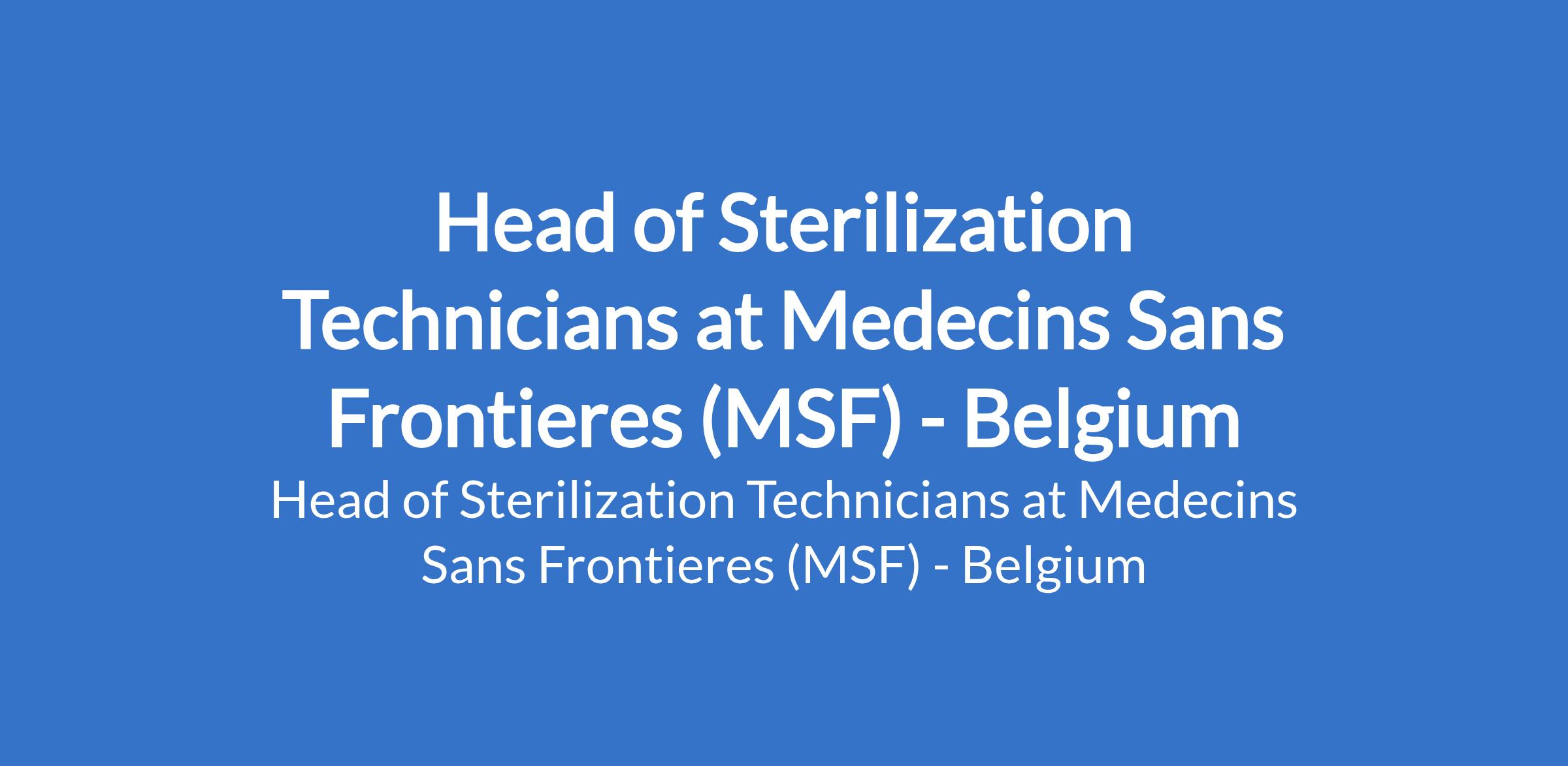 Medecins Sans Frontieres (MSF) - Belgium is recruiting to fill the position of: Head of Sterilization Technician. The position is located in Maiduguri, Borno State. Interested candidates should possess a Bachelor`s / Master`s Degree with 2 years experience.