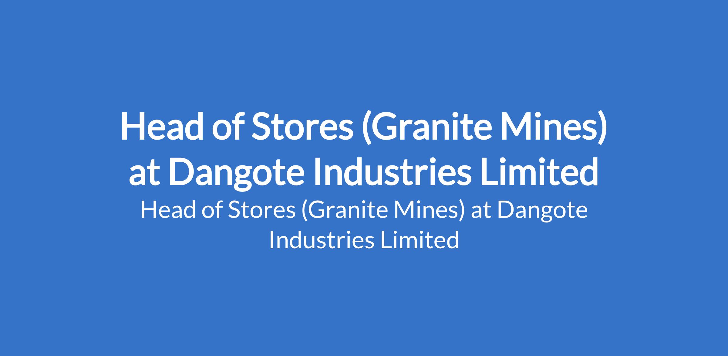 Dangote Industries Limited is recruiting to fill the position of: Head of Stores (Granite Mines). The position is located in Ijebu-Igbo, Ogun State. Interested candidates should possess a Bachelors Degree in Supply Chain, Procurement, Business Admin, Accounting, or related fields with 5+ years of experience in store management / inventory control, with SAP experience.