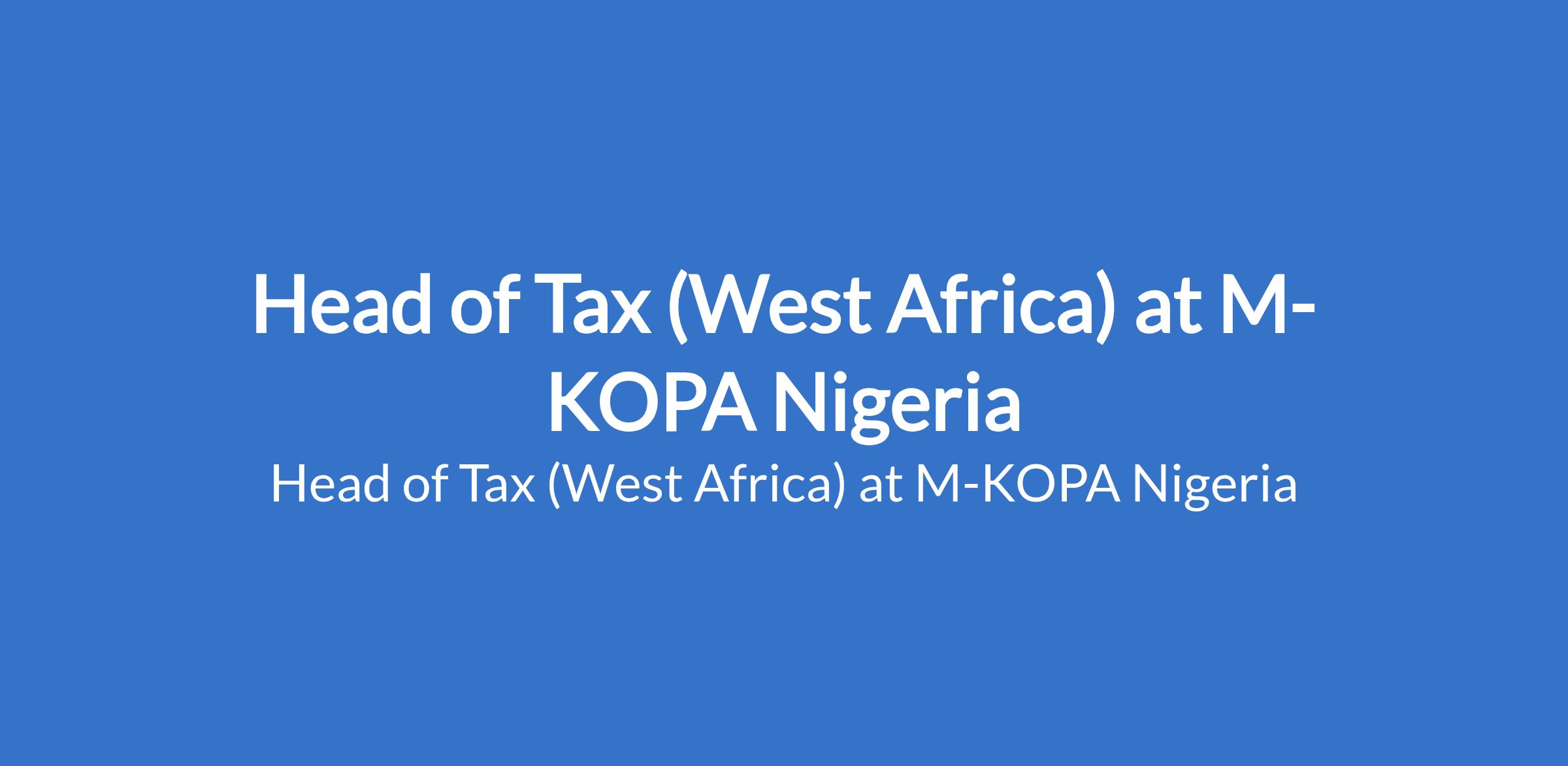 M-KOPA Nigeria is recruiting to fill the position of: Head of Tax (West Africa). Interested candidates should be qualified Chartered Accountants (ICAN, ACCA, or equivalent) with a professional tax qualification or deep specialisation in Nigerian corporate tax including demonstrable experience across CIT, VAT, WHT, and transfer pricing, and a proven track record managing NRS audit engagements and tax authority relationships.