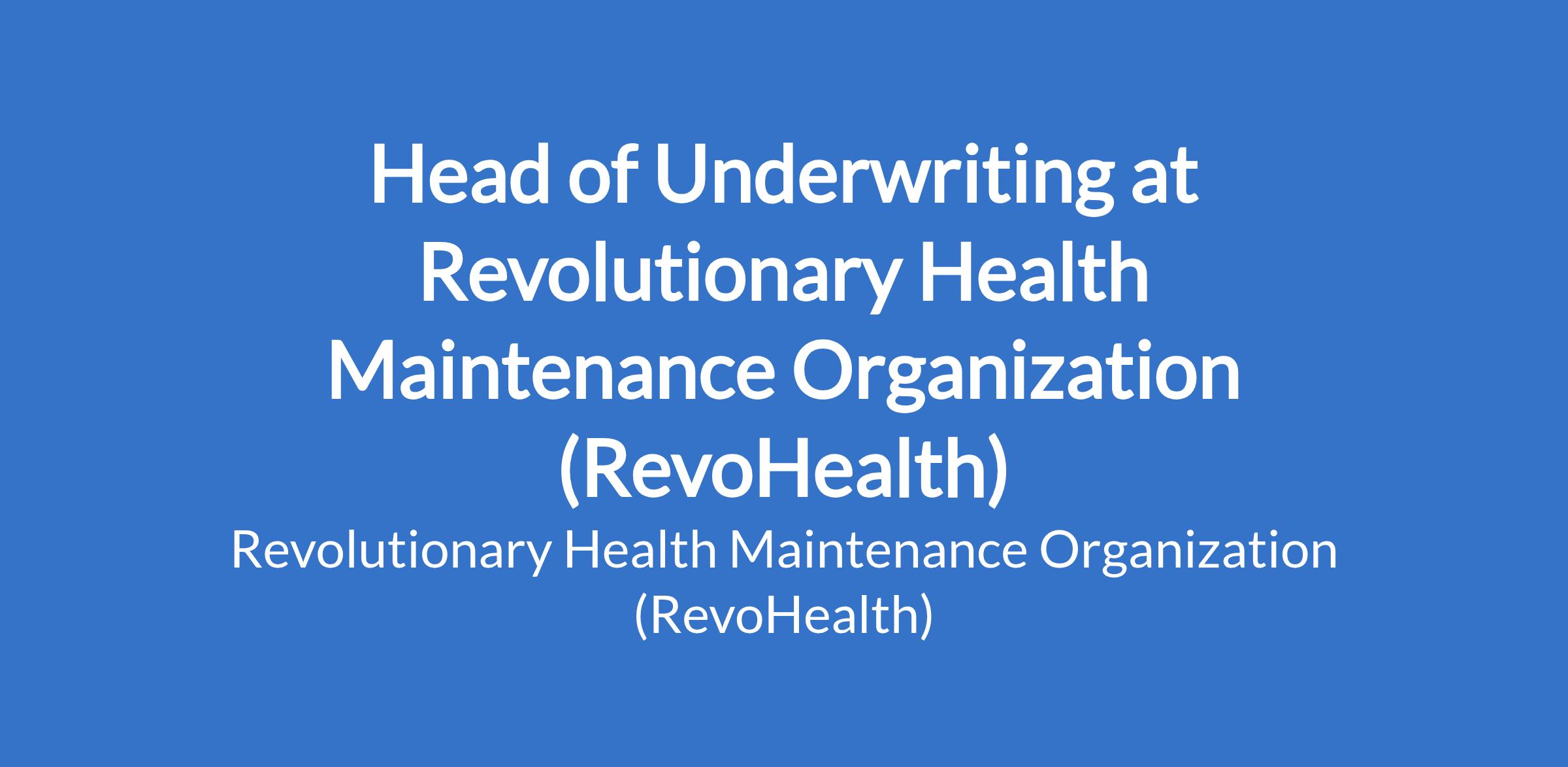 The head of underwriting leads the underwriting unit by designing, implementing and enforcing risk selection, pricing, and portfolio management strategies that ensure profitability, sustainability and regulatory compliance of RevoHealth.