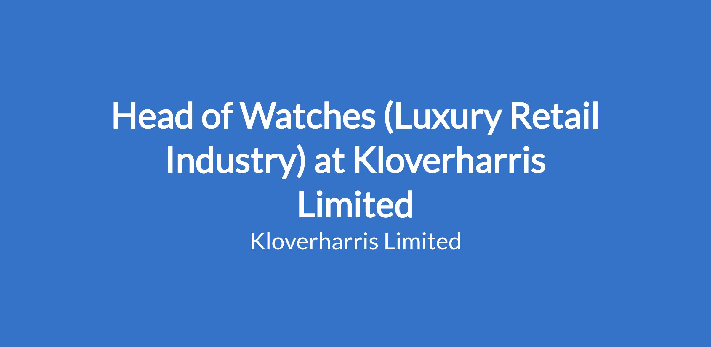 Minimum of 10 - 15 years' experience in luxury watch sales or a similar high-value product category