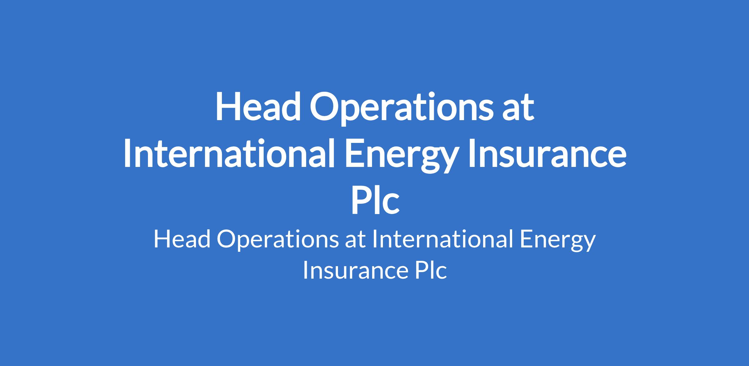 International Energy Insurance Plc is recruiting to fill the position of: Head Operations. The position is located in Lagos Lagos, State. Interested candidates should possess a Bachelors Degree in Business Administration, Insurance, Operations Management, Finance, or related field, Masters Degree (MBA/MSc) is an added advantage, Professional certifications such as ACII, NII, PMP, or related operations/insurance credentials are an advantage with a minimum of 8 12 years progressive experience in operations management within the insurance or financial services industry along with at least 4 years in a leadership role.