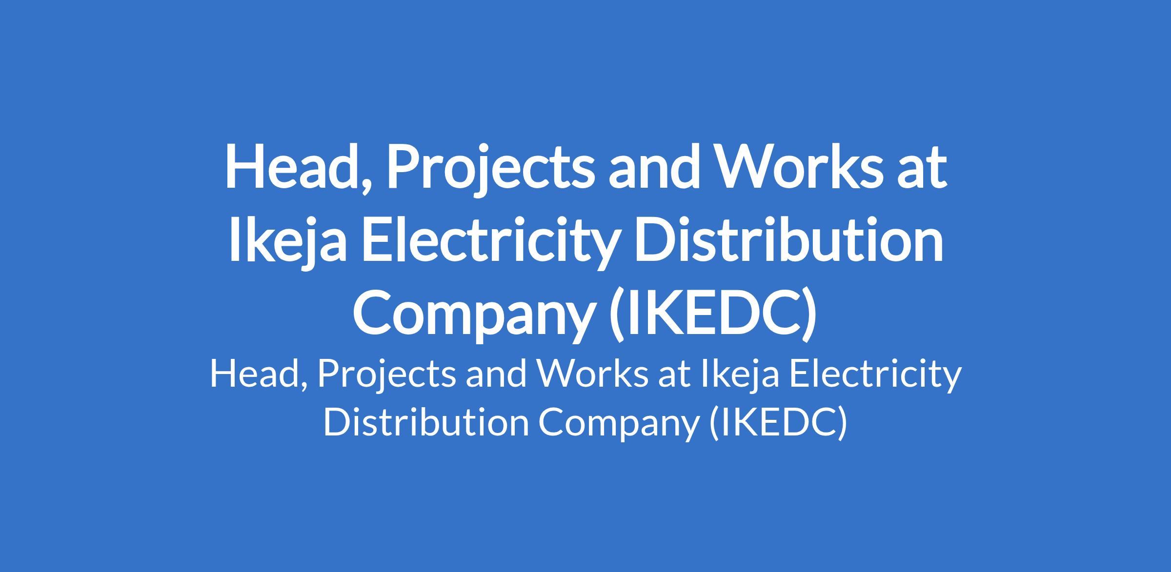Ikeja Electricity Distribution Company (IKEDC) is recruiting to fill the position of: Head, Projects and Works. The position is located in Lagos State. This opportunity is a Managerial role responsible for overseeing the planning and delivery of infrastructure and technical projects across the organization.Interested candidates should possess a Bachelors Degree or its equivalent in Civil Engineering, Electrical Engineering, Mechanical Engineering, or a related discipline with a minimum of 10 years progressive engineering and project management experience, with significant exposure to large-scale infrastructure, utility, or power sector.