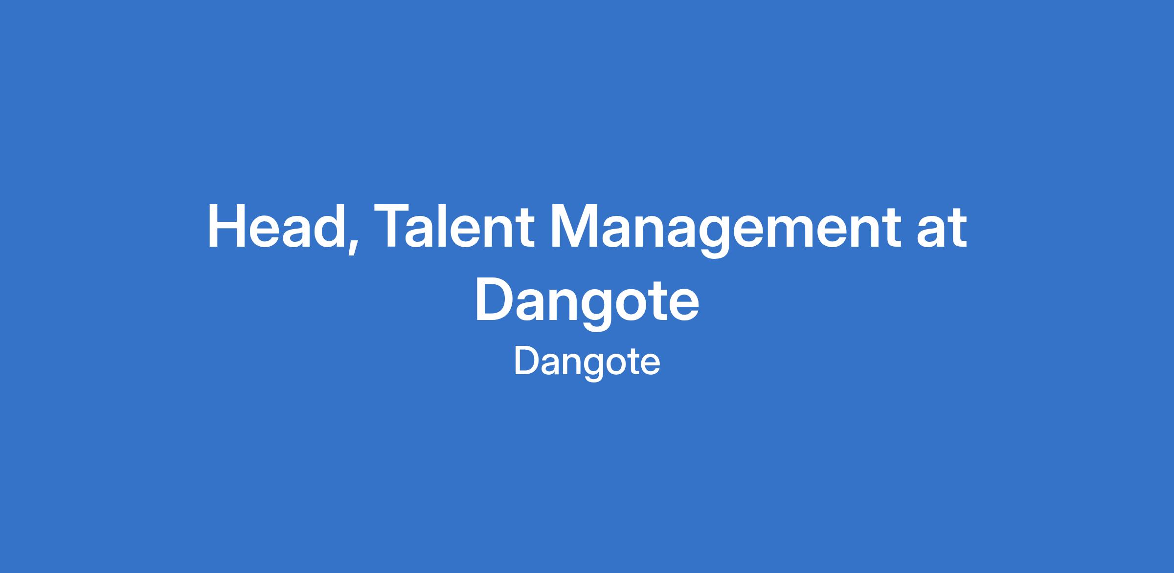 Head, Talent Management at Dangote