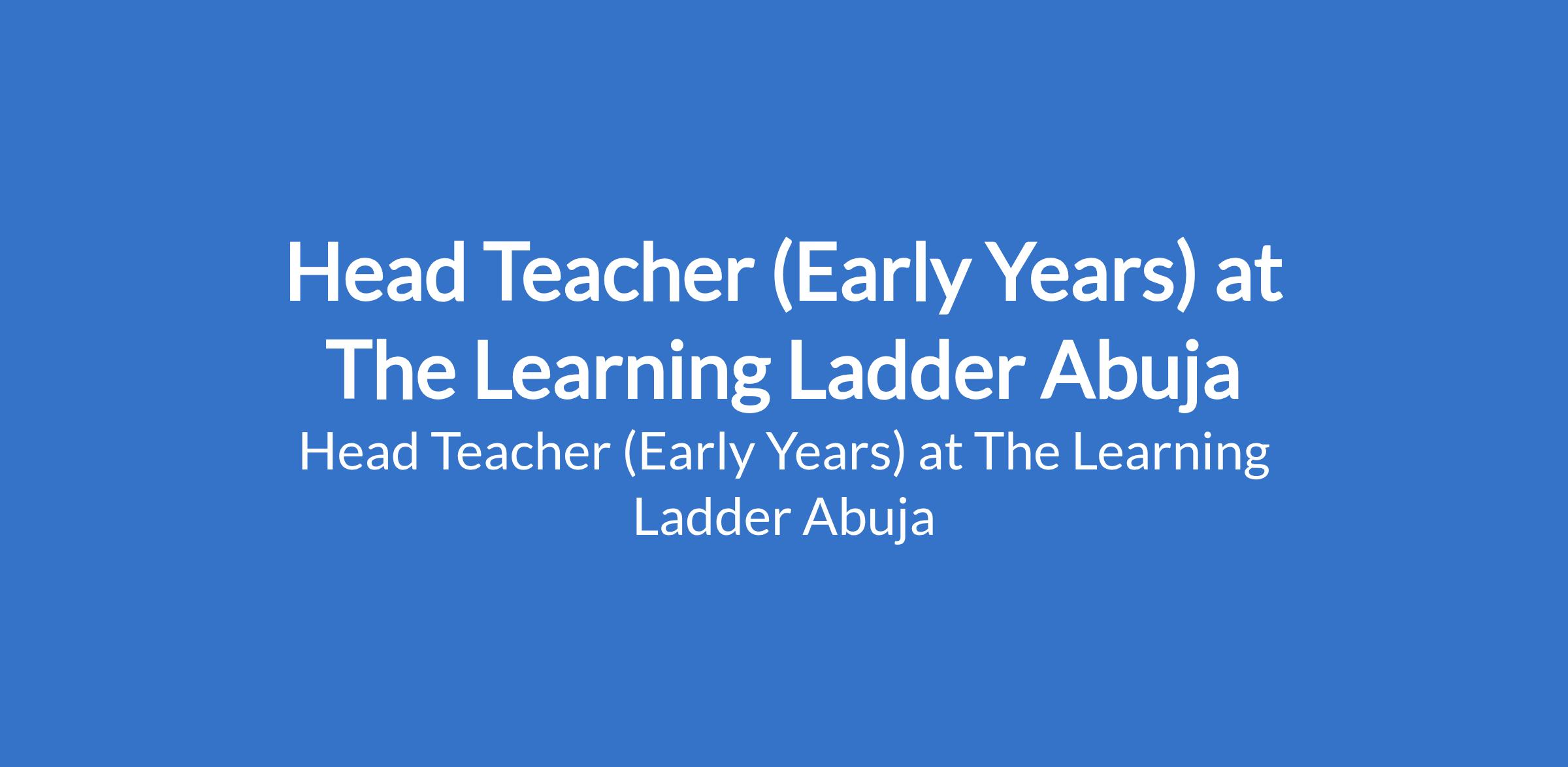 The Learning Ladder Abuja is recruiting to fill the position of: Head Teacher (Early Years). The position is located in Gwarimpa, Abuja (FCT). Interested candidates should possess a Bachelors Degree / Certification in Early Childhood Education, Education, or related fields with 3 - 5 years of teaching experience in early years education.