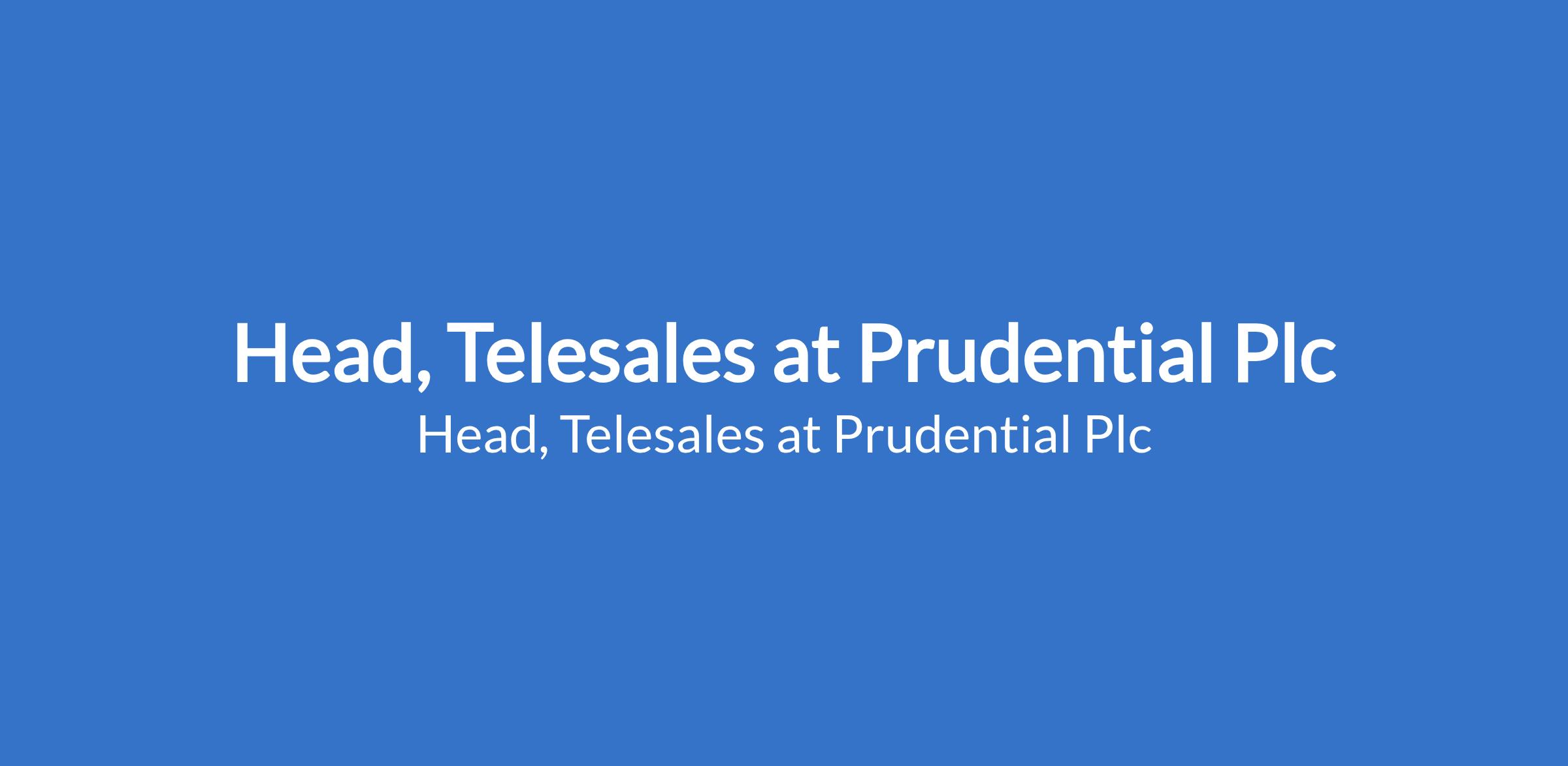 Prudential Plc is recruiting to fill the position of: Head, Telesales. Interested candidates should possess a minimum of First Degree (B.Sc.) in Marketing, Business Management or related discipline (at least a grade of 2.2 Second Class Lower) with a minimum of 5 years experience in sales, or customer acquisition roles.