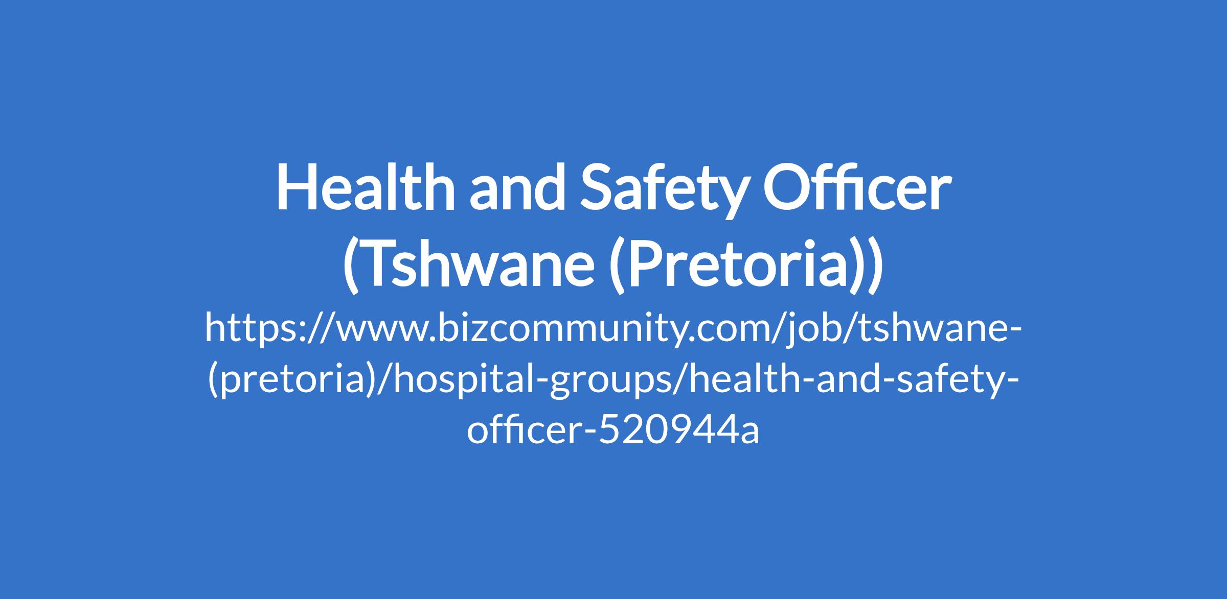 Health and Safety Officer (Tshwane (Pretoria))