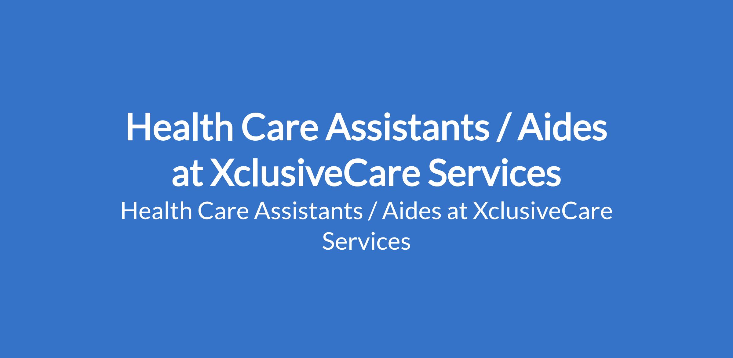 Health Care Assistants / Aides at XclusiveCare Services